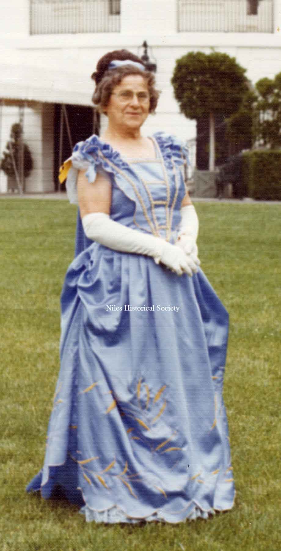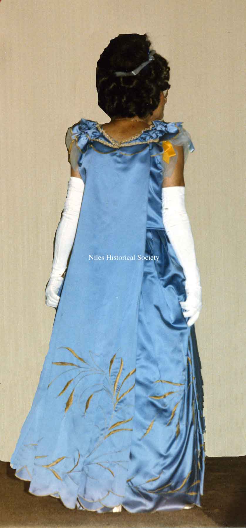 and was made in Paris of sky-blue silk taffeta. It has Empire