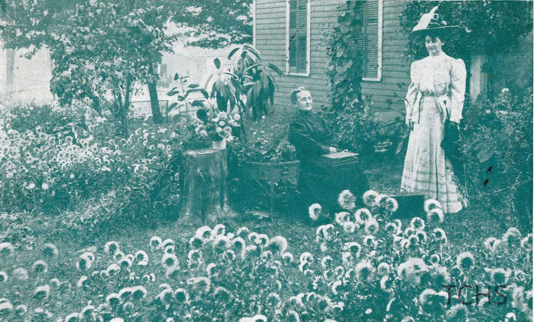 Lulu Mackey Wess and Elmira Mackey in front of McKinley Birthplace Home.