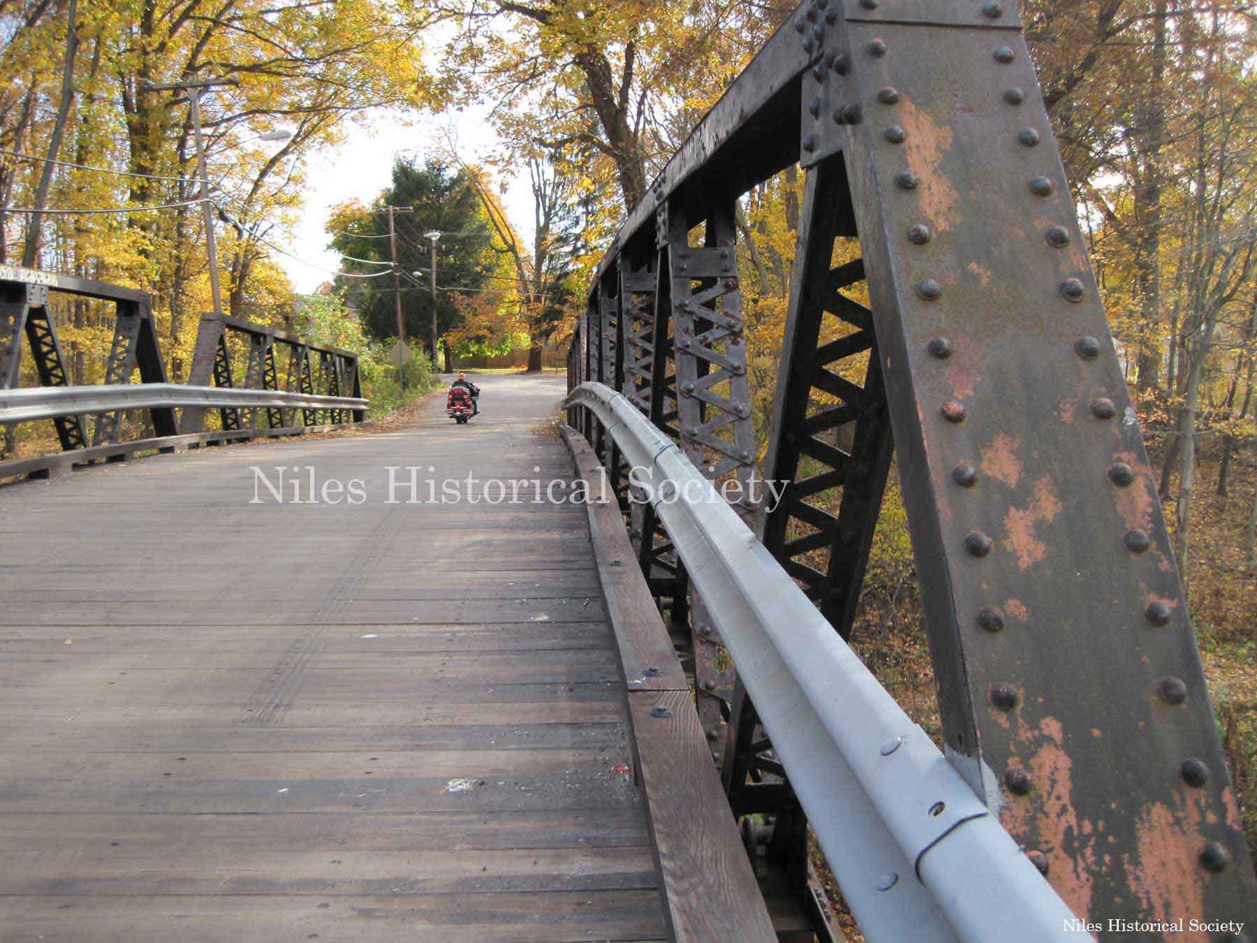 The Fifth Avenue Iron Bridge with its wooden roadway provided access over the Pennsylvania Railroad tracks that followed the Mahoning River.