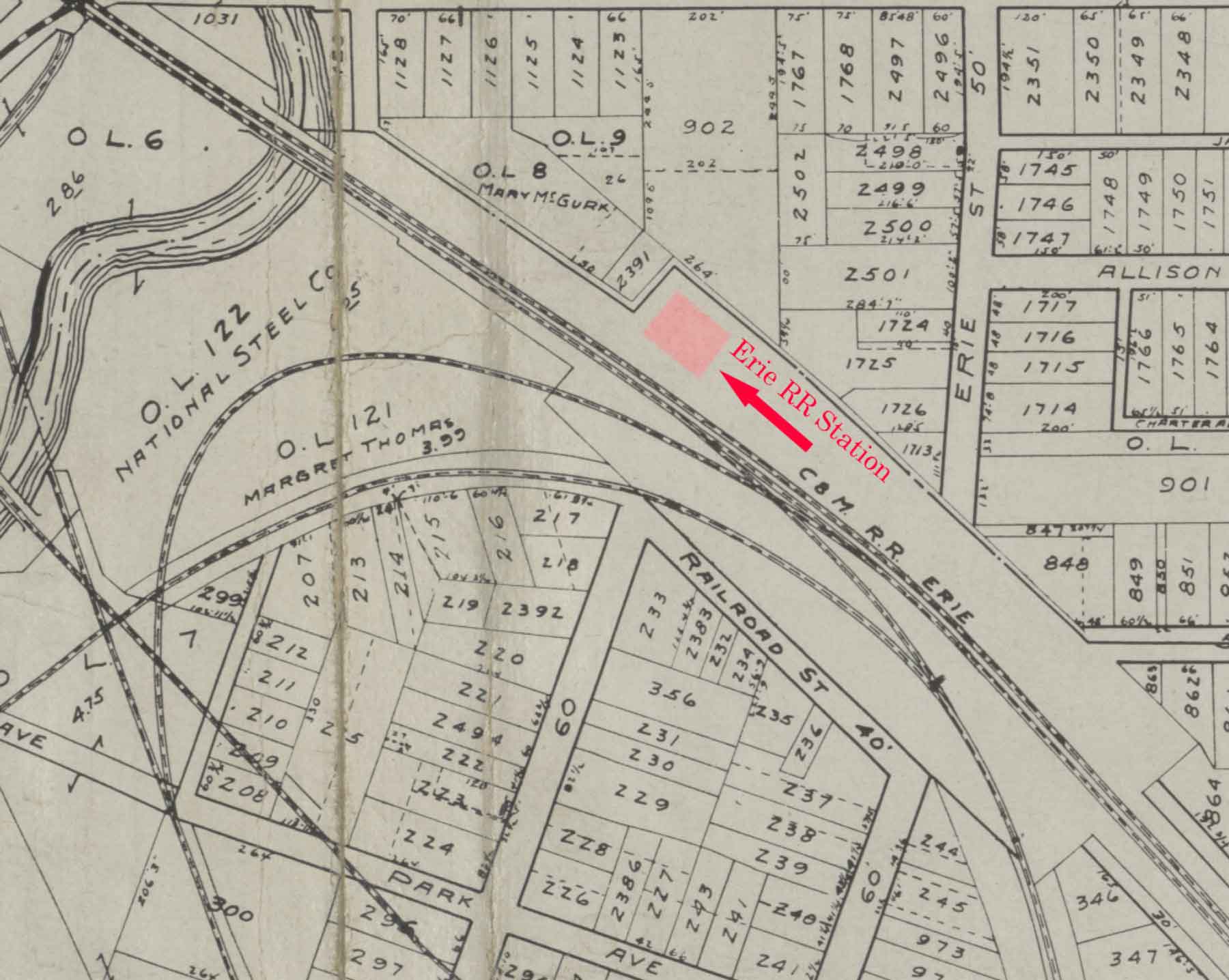 Erie Rail Road passenger station was near Langley Street and the Niles Firebrick factory.