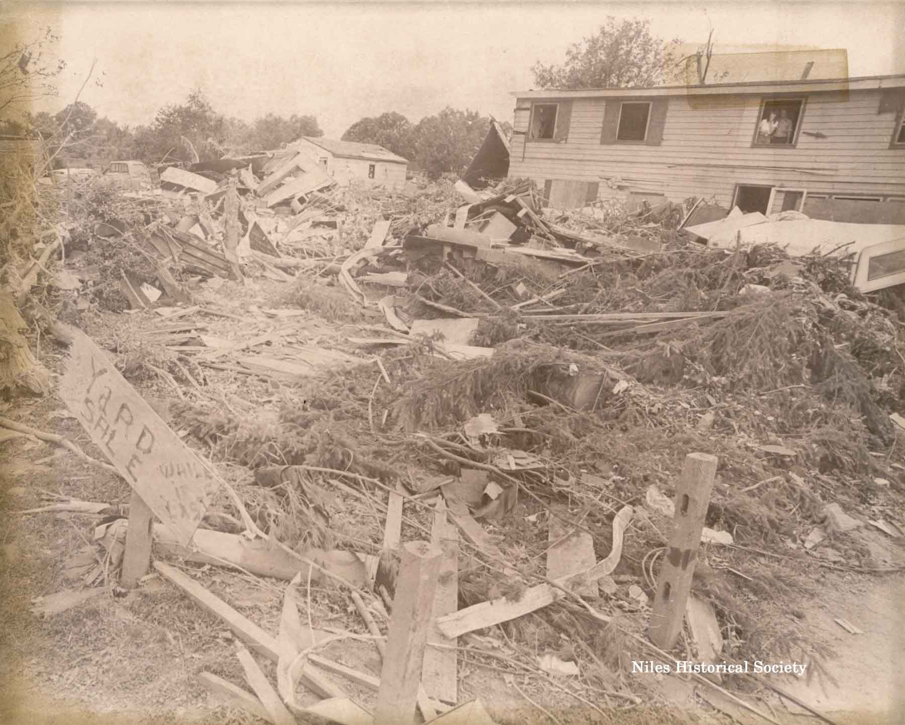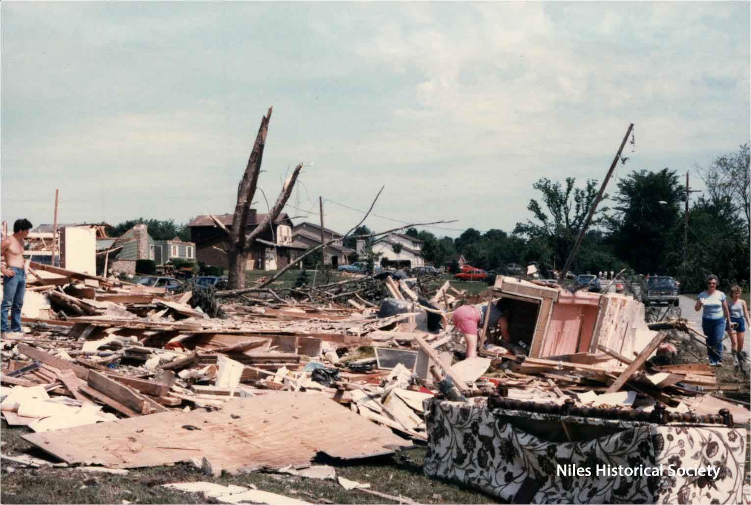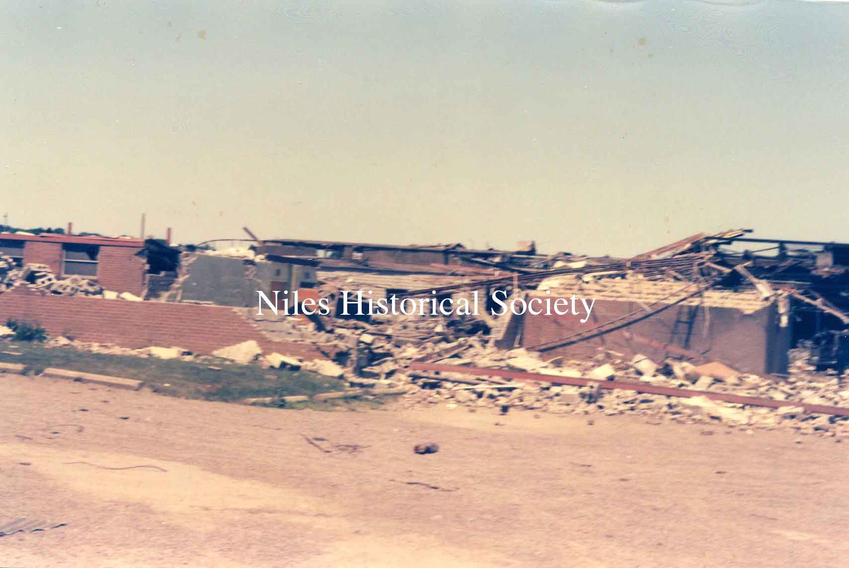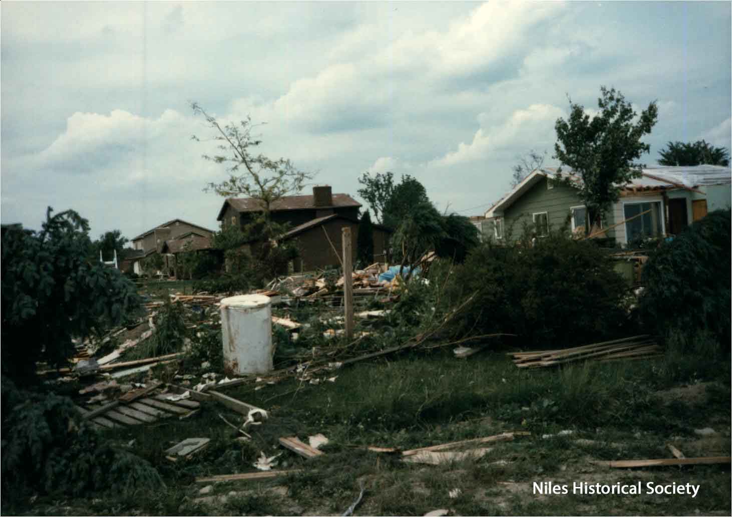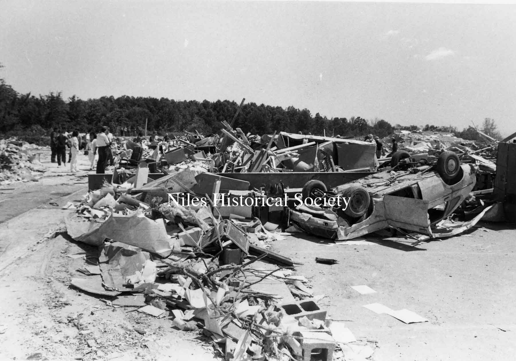 from cemetery yo junkyard. Union Cemetery, a Niles landmark, of flowering shrubs and venerable trees, was a mass of splintered timber, tires, concrete and other rubble after Friday night's tornado.