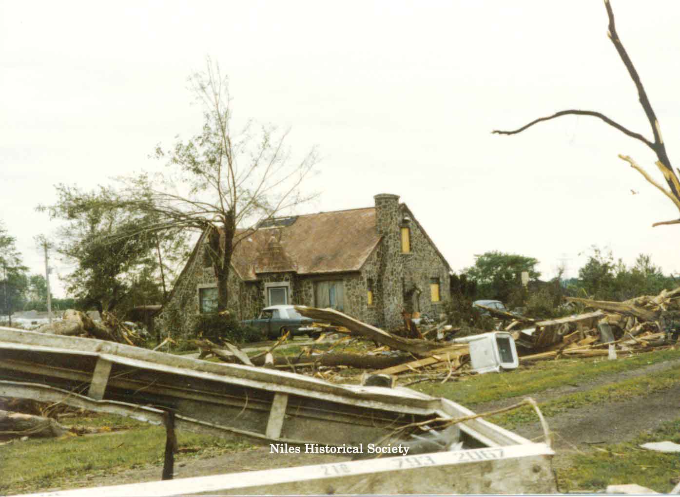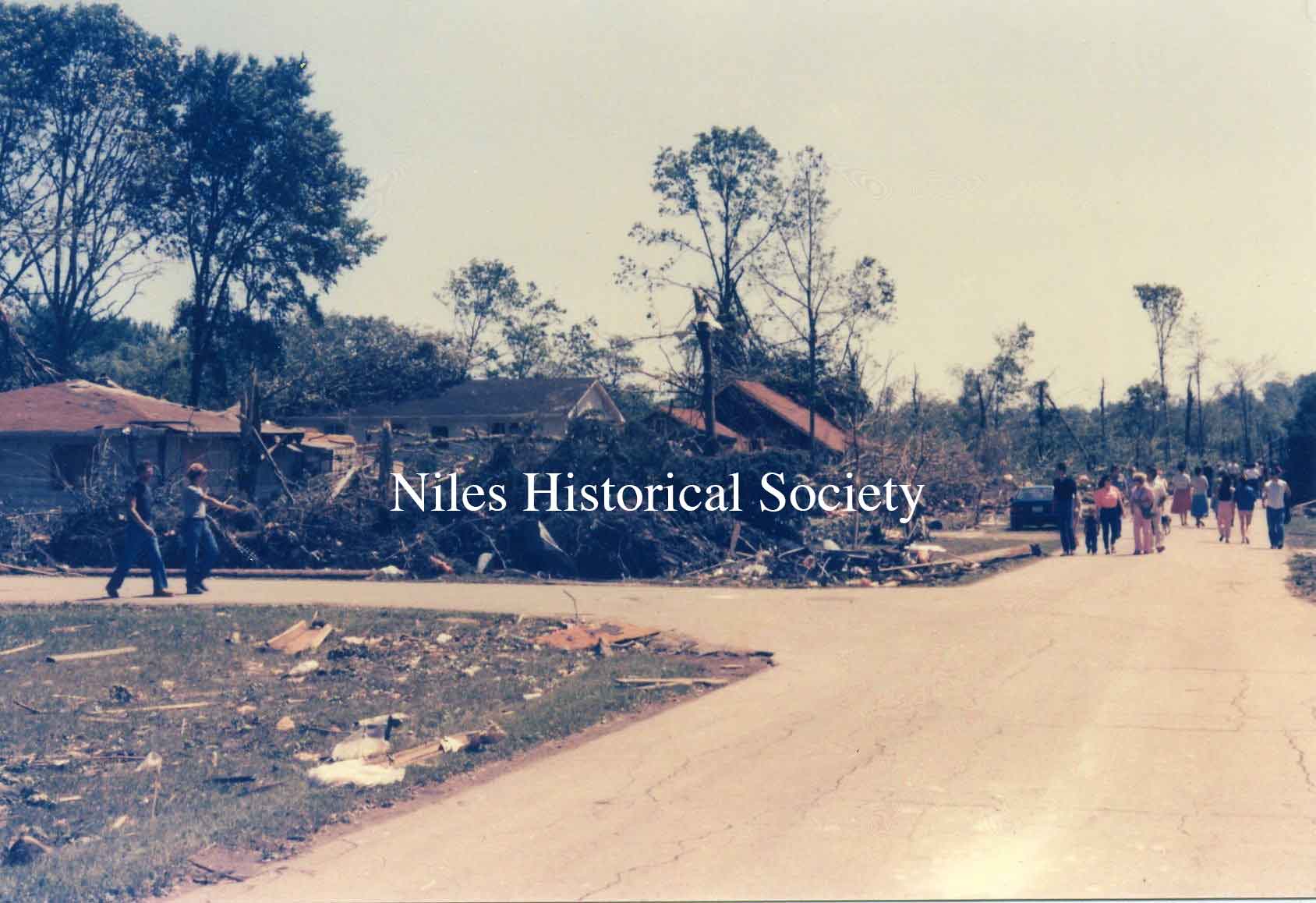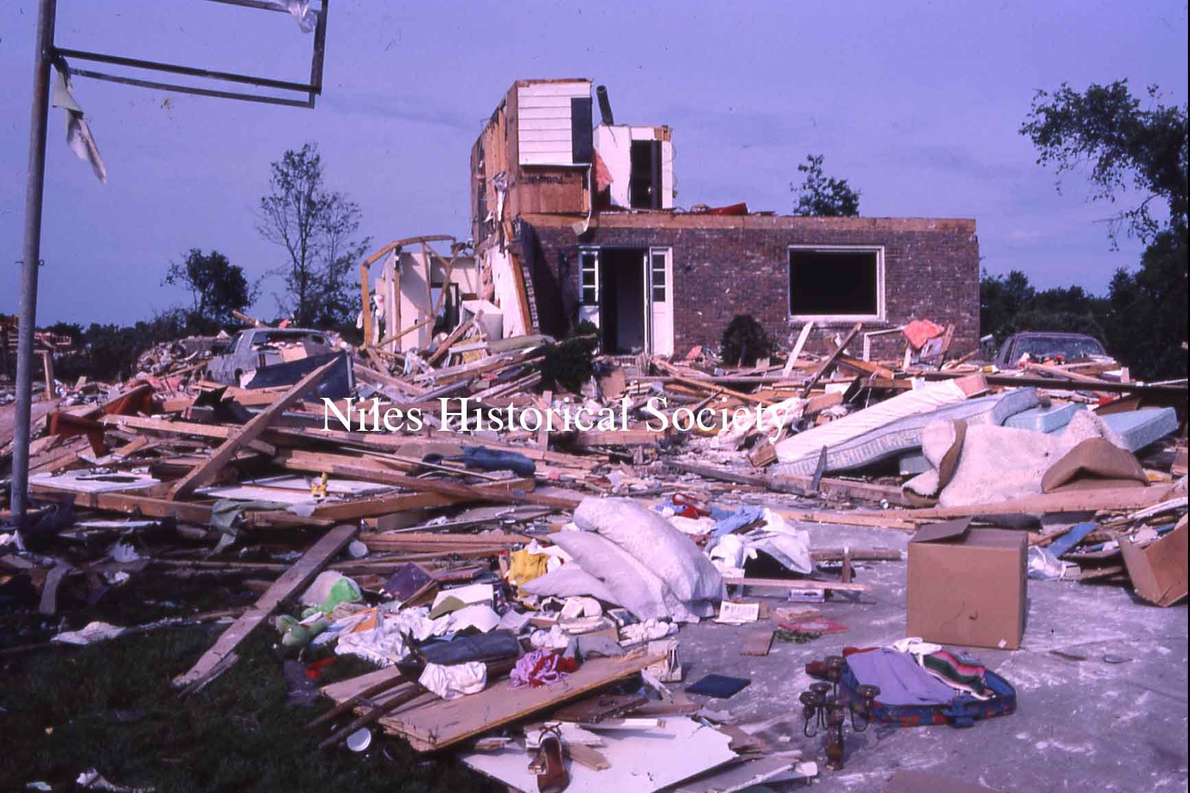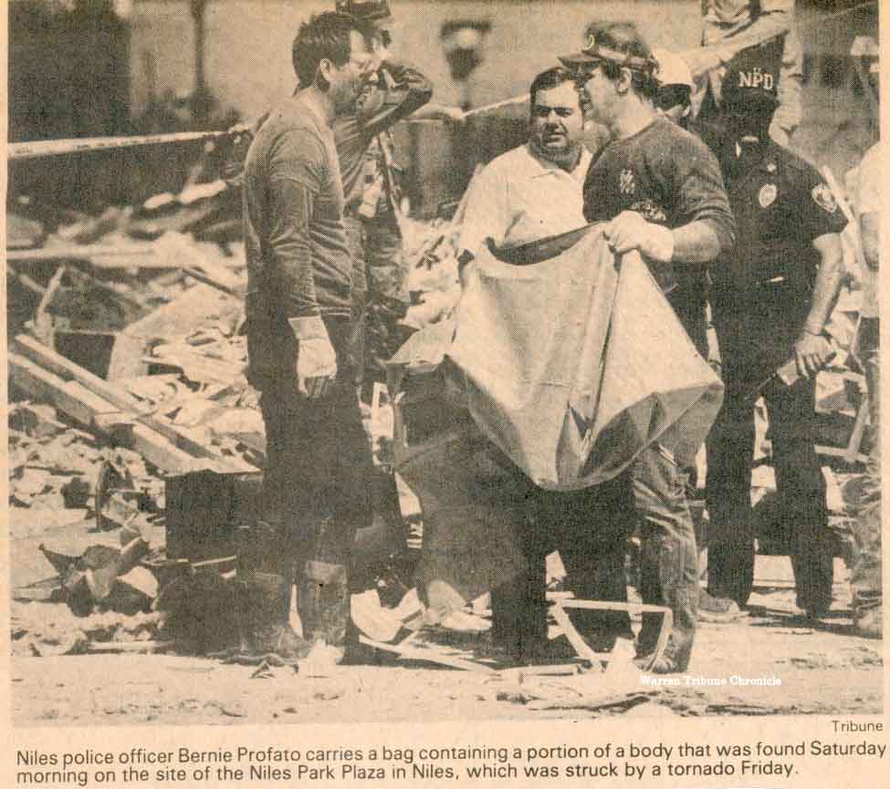 from cemetery yo junkyard. Union Cemetery, a Niles landmark, of flowering shrubs and venerable trees, was a mass of splintered timber, tires, concrete and other rubble after Friday night's tornado.