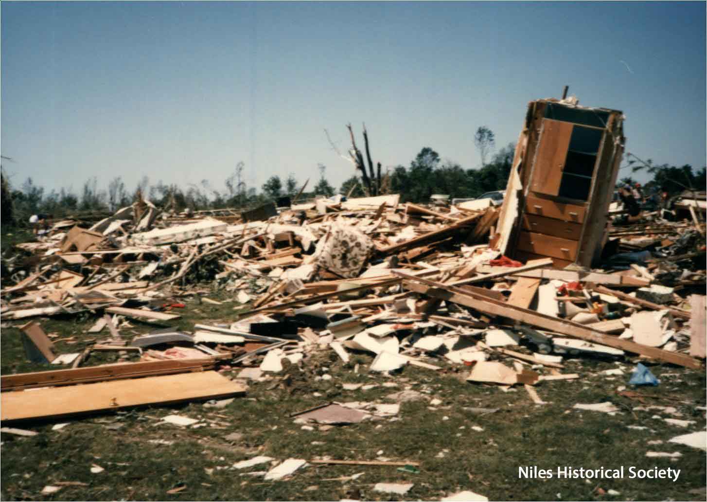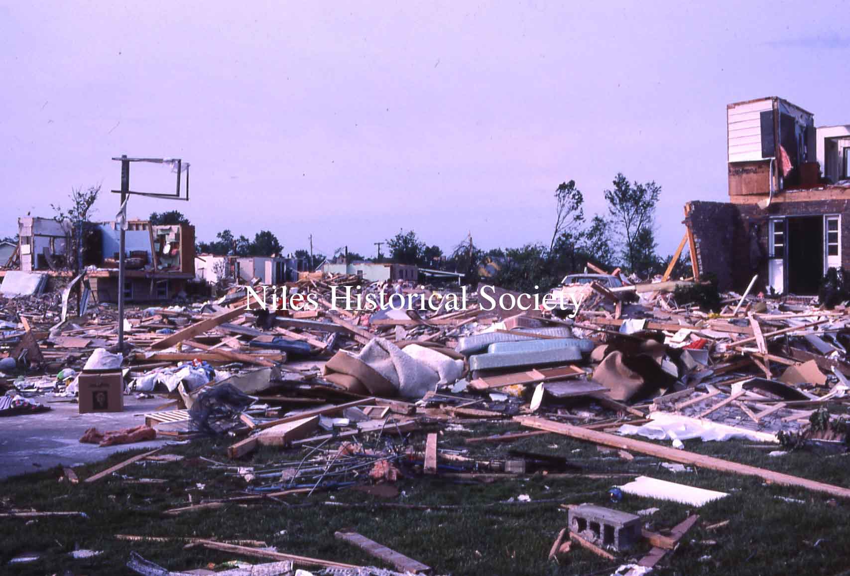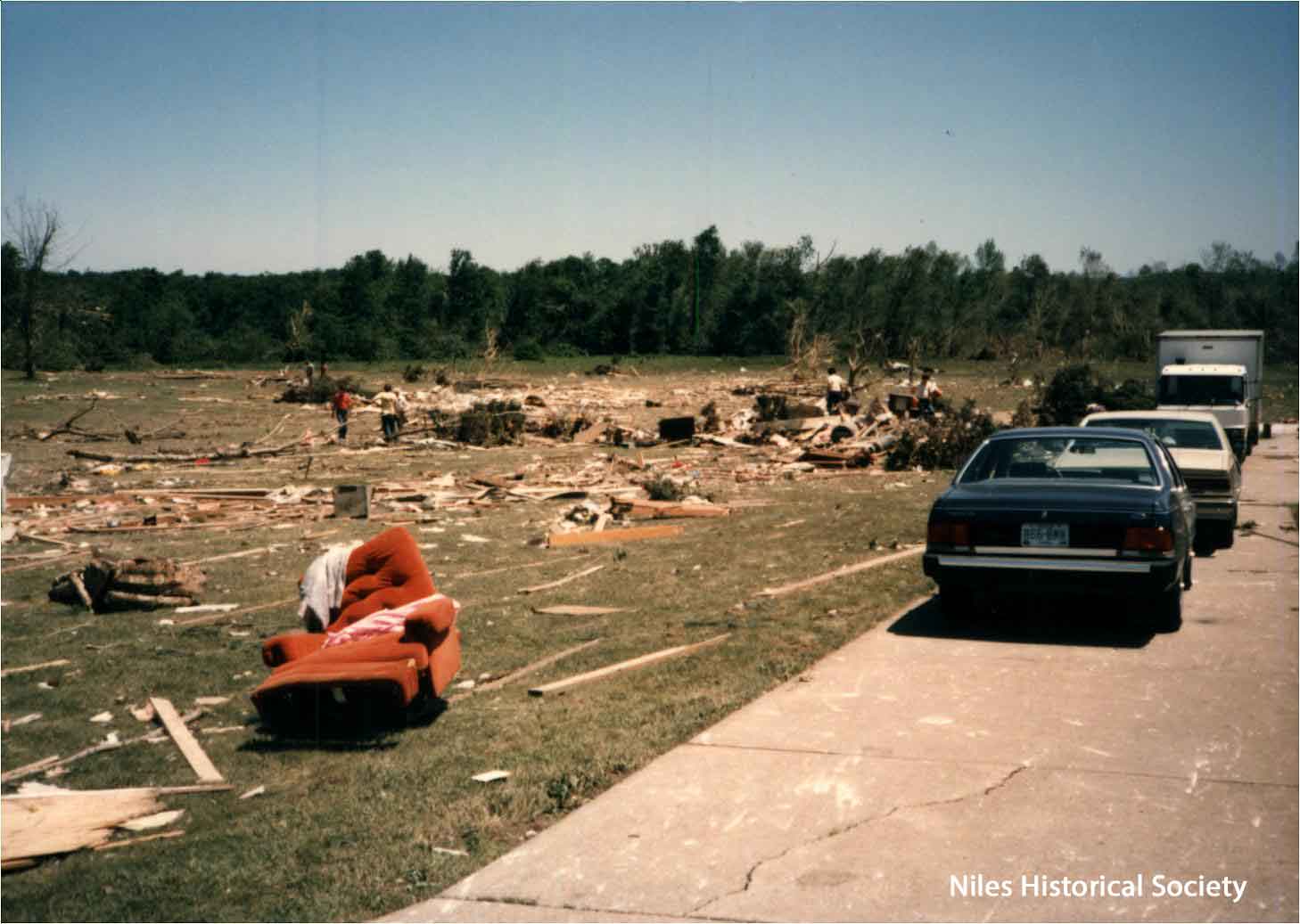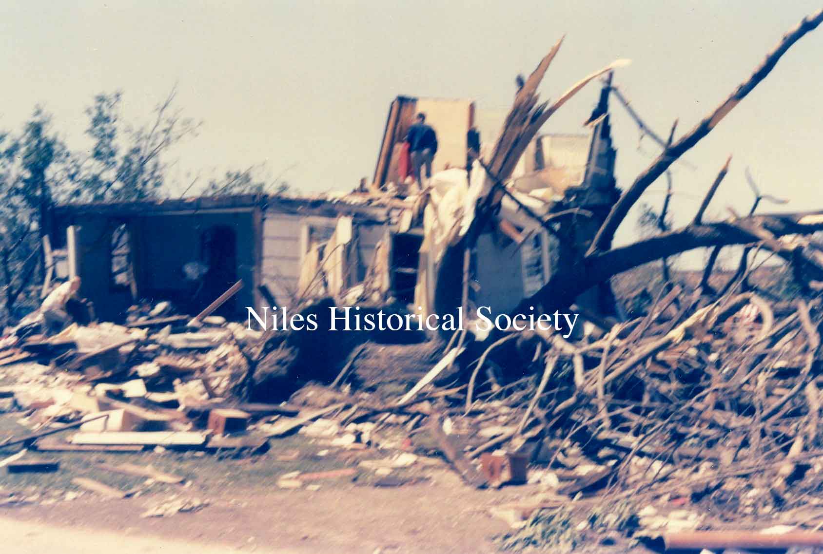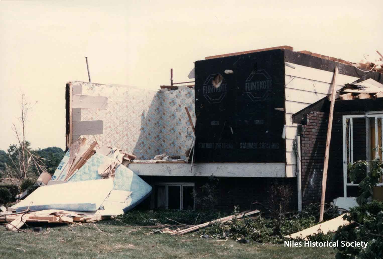from cemetery yo junkyard. Union Cemetery, a Niles landmark, of flowering shrubs and venerable trees, was a mass of splintered timber, tires, concrete and other rubble after Friday night's tornado.