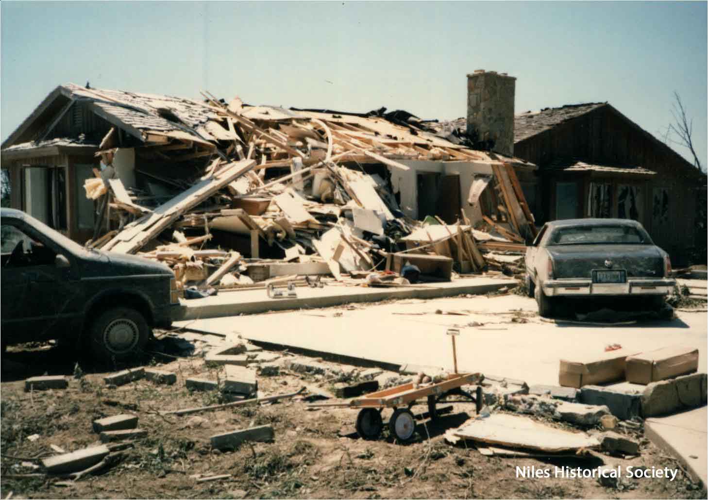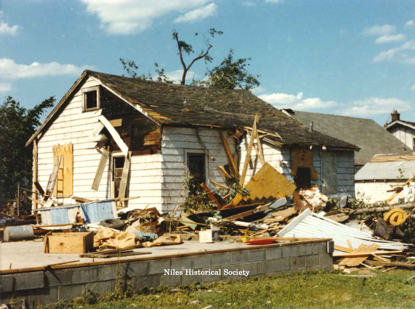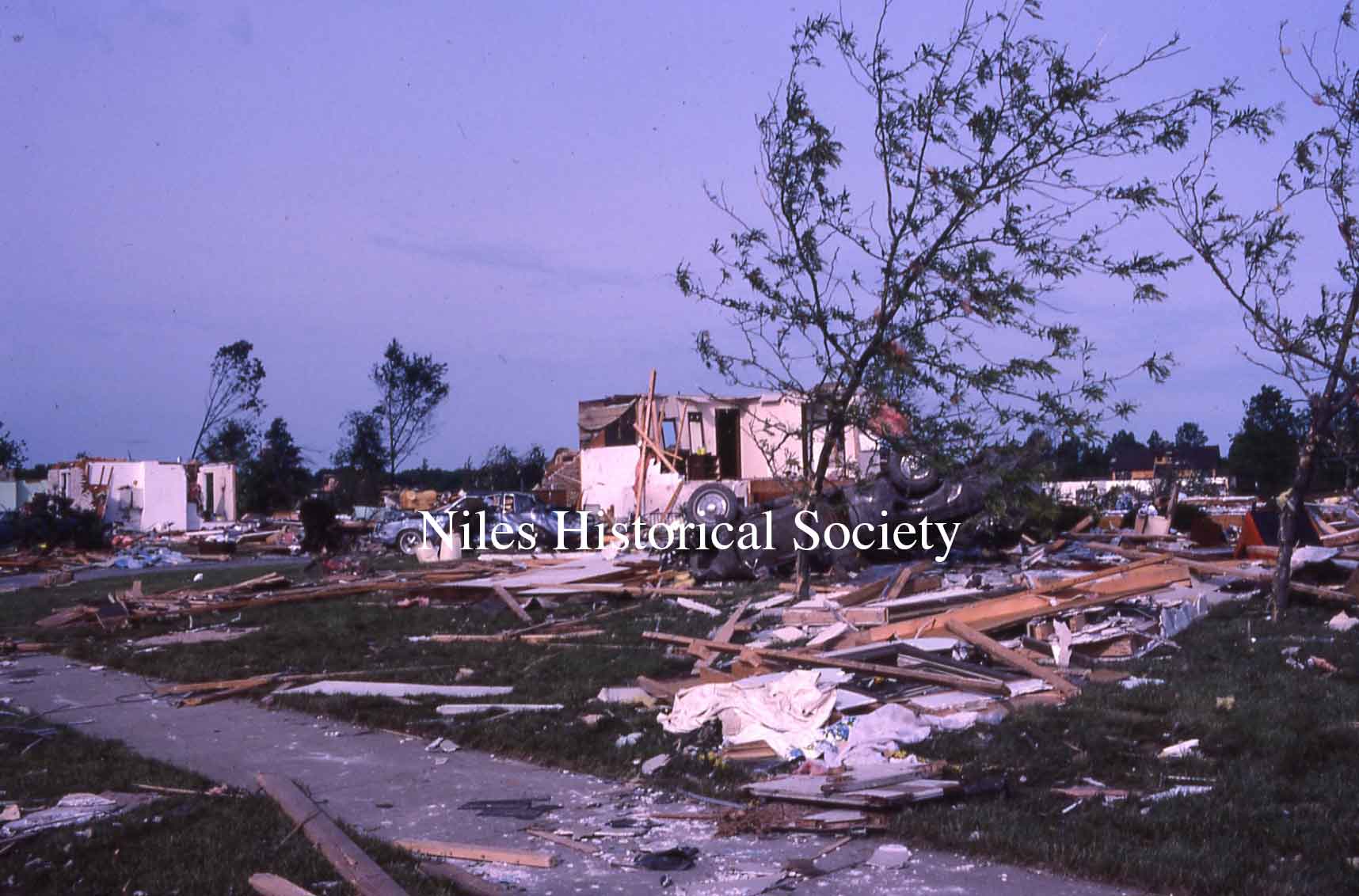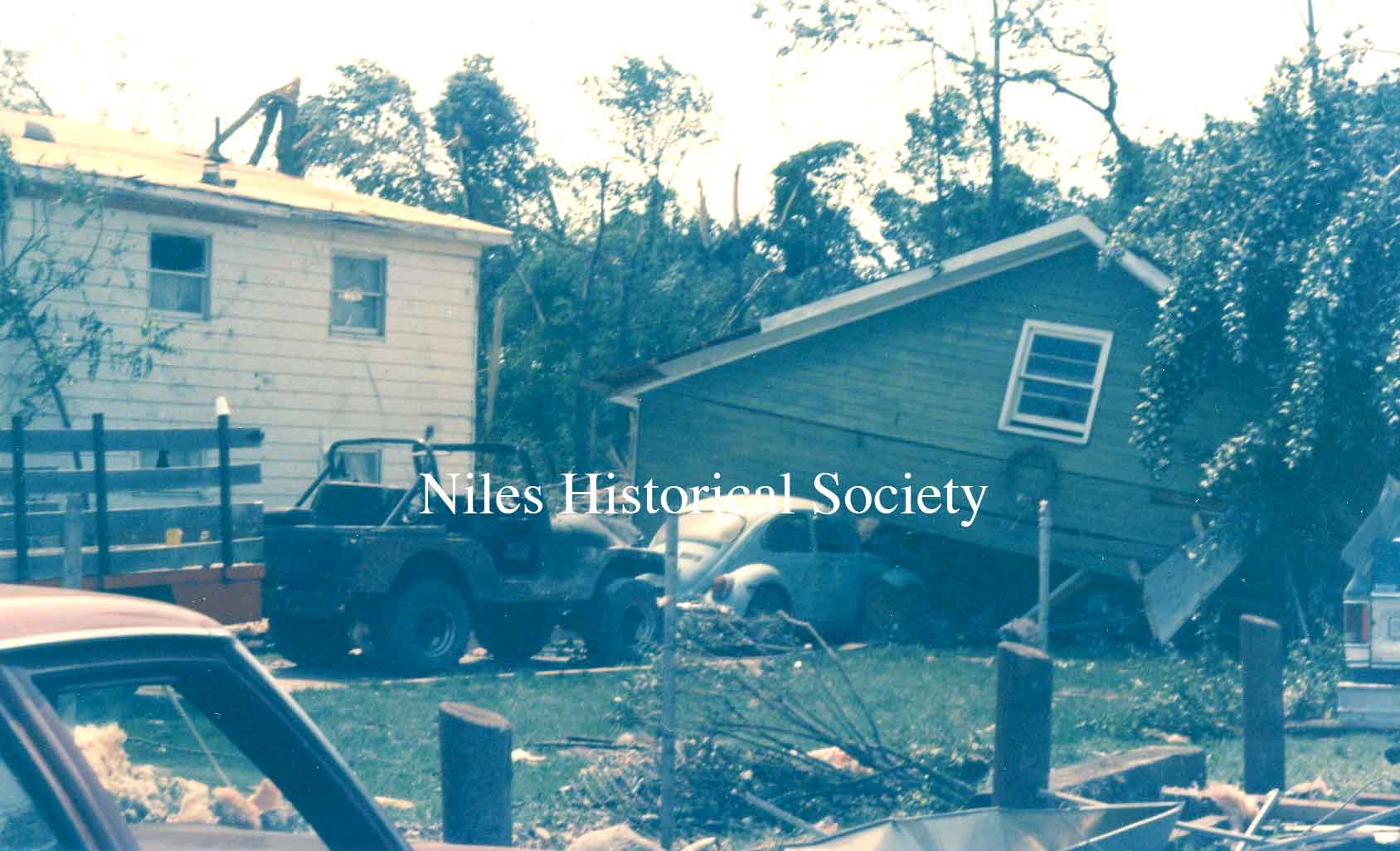 from cemetery yo junkyard. Union Cemetery, a Niles landmark, of flowering shrubs and venerable trees, was a mass of splintered timber, tires, concrete and other rubble after Friday night's tornado.