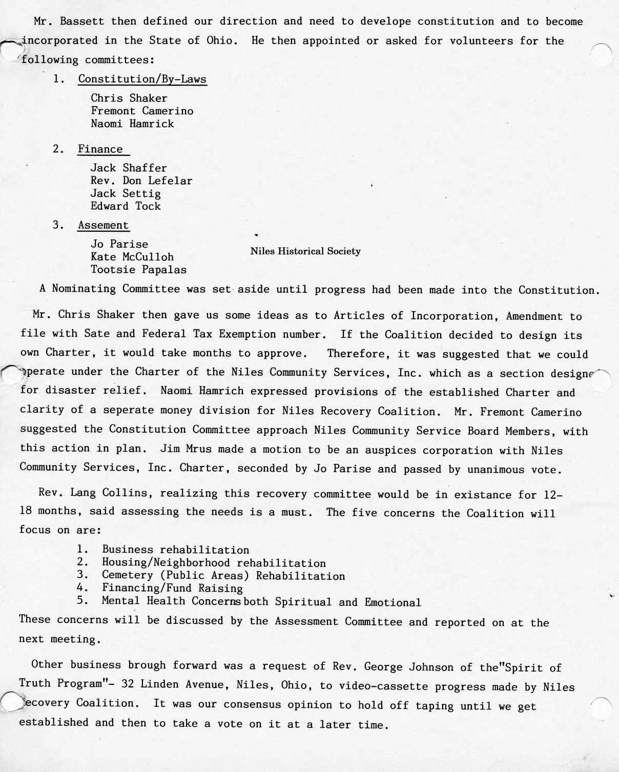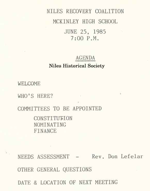 Niles Recovery Coalition Agenda