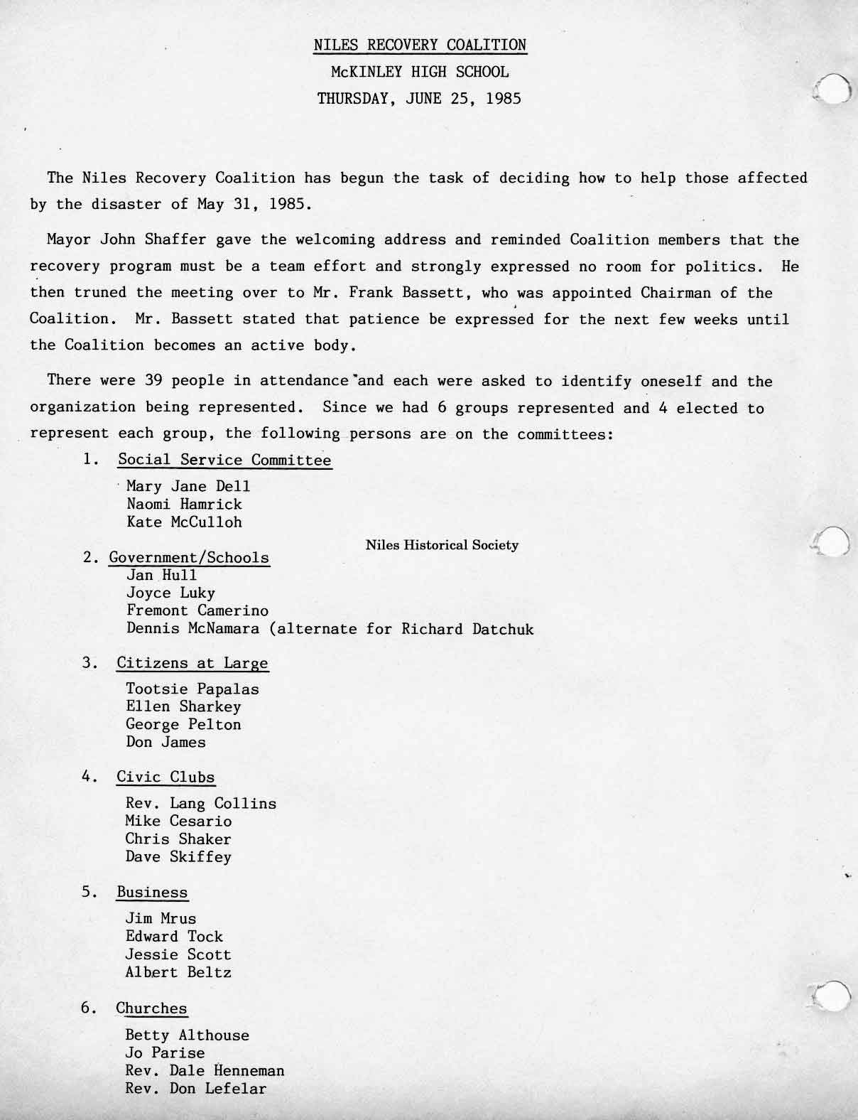 Niles Group Forms Recovery Coalition