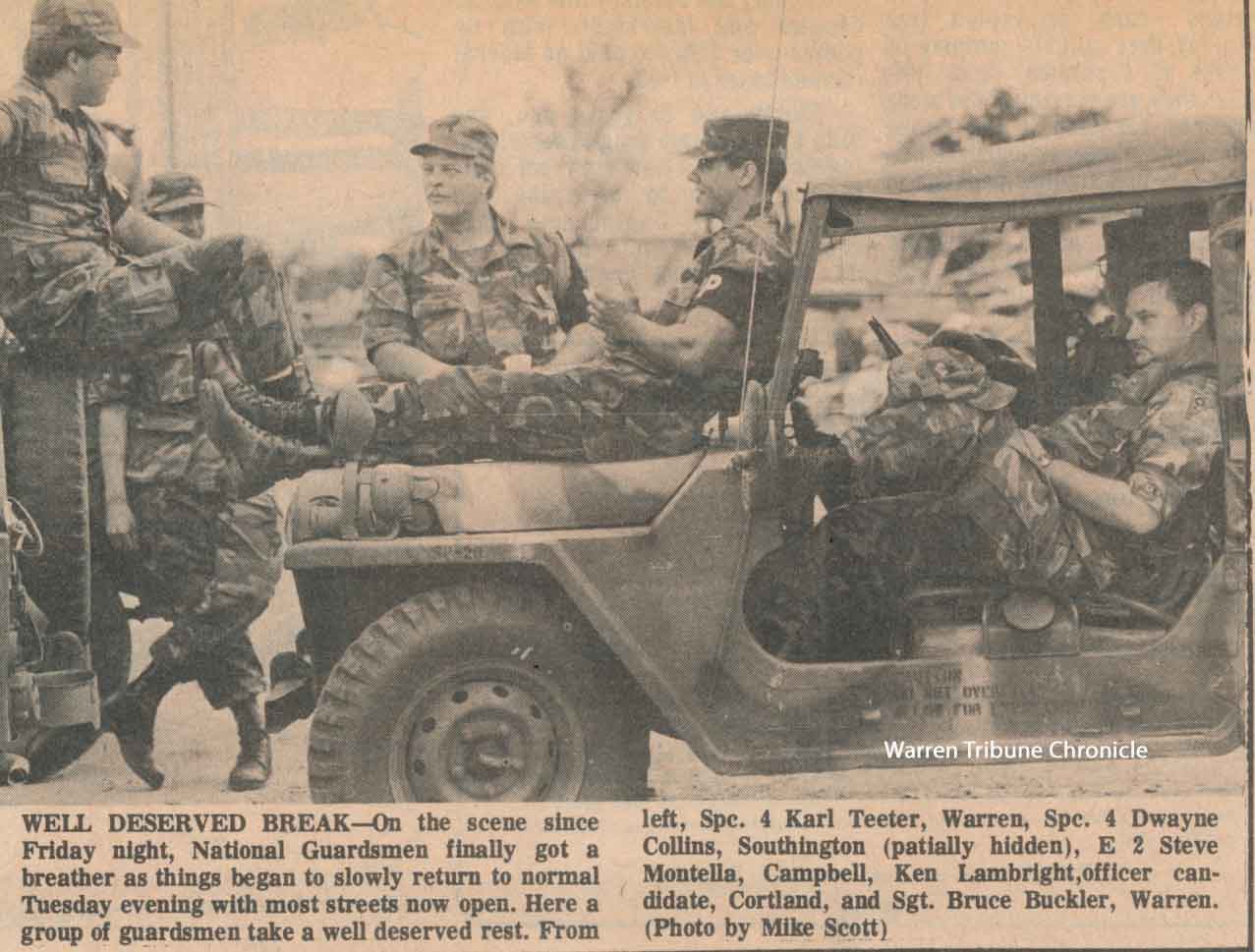 On the scene since Friday night, National Guardsmen get a breather as things begin to slowly return to normal Tuesday evening with most streets now open.