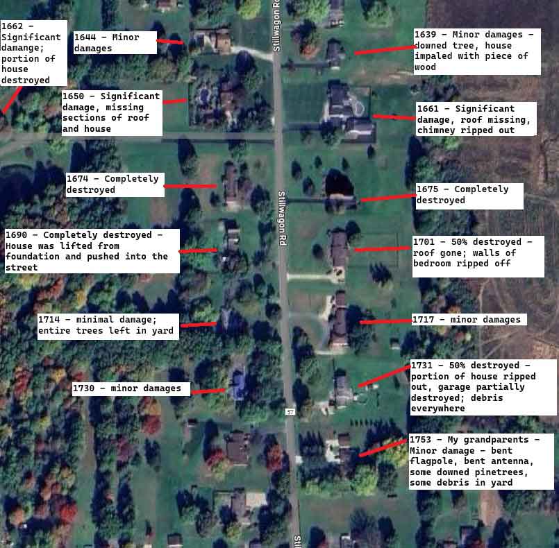 Google map location of Stillwagon 1985 Tornado damage
