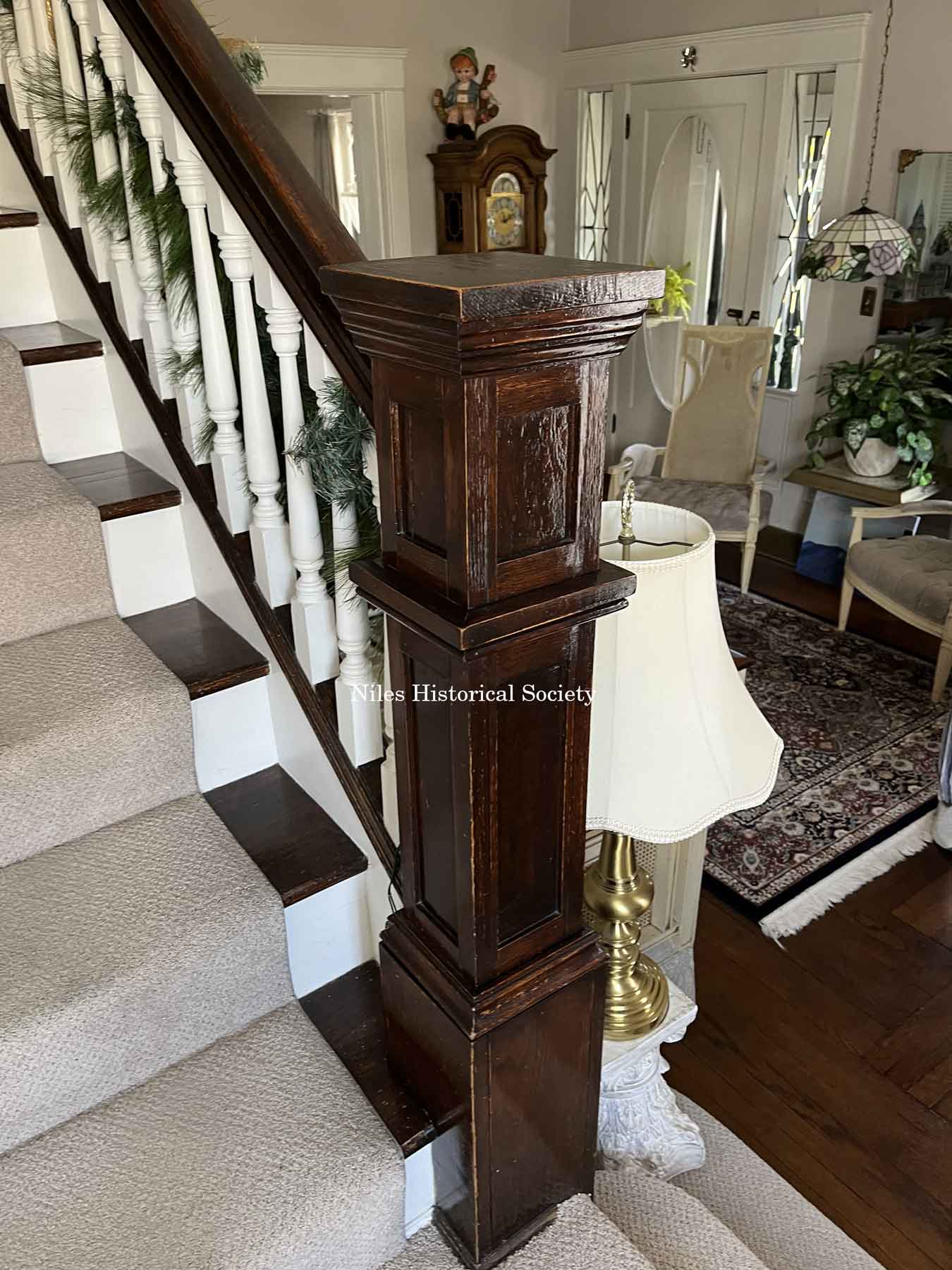 Detail of staircase and newell post.