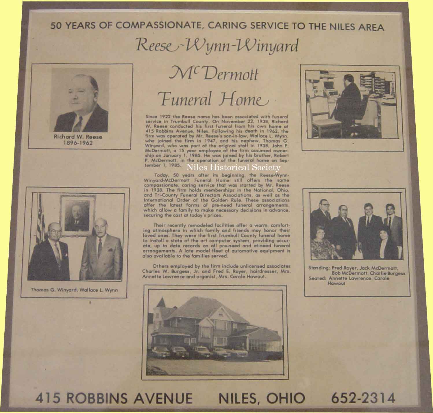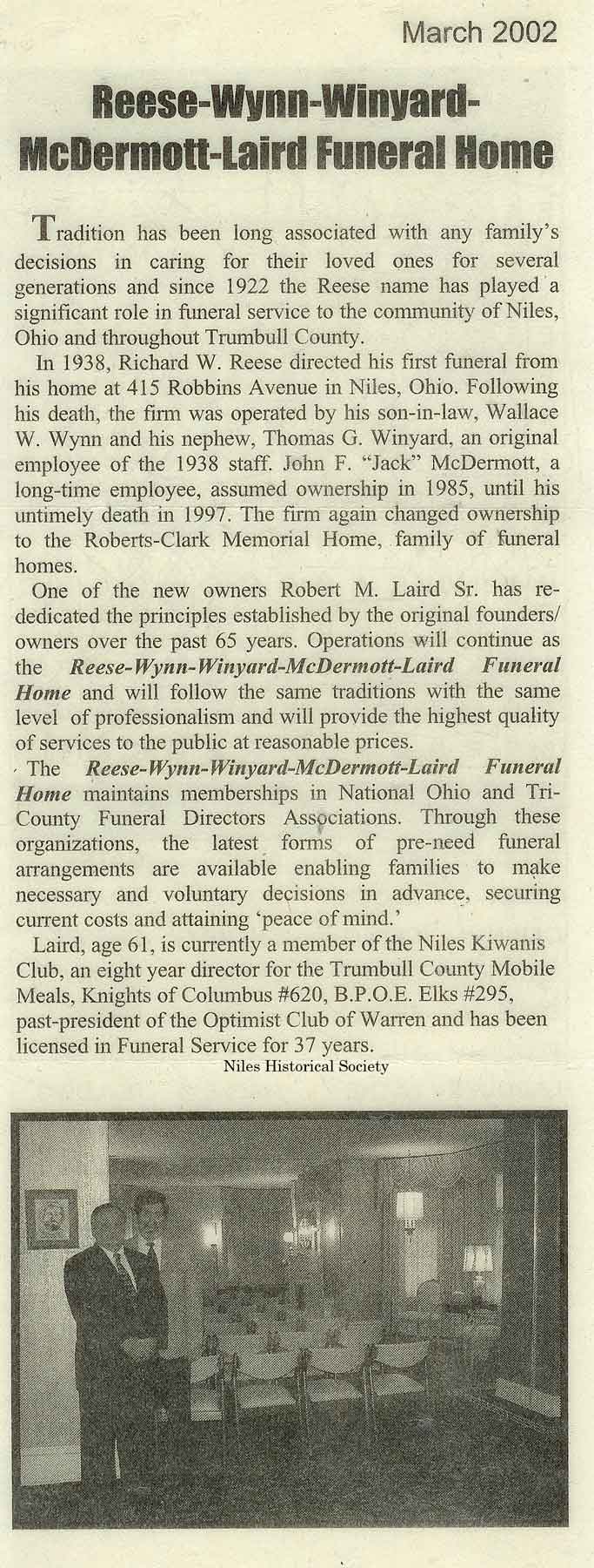 Reese Funeral Home in Niles is now operated by Winyard, Wynn.