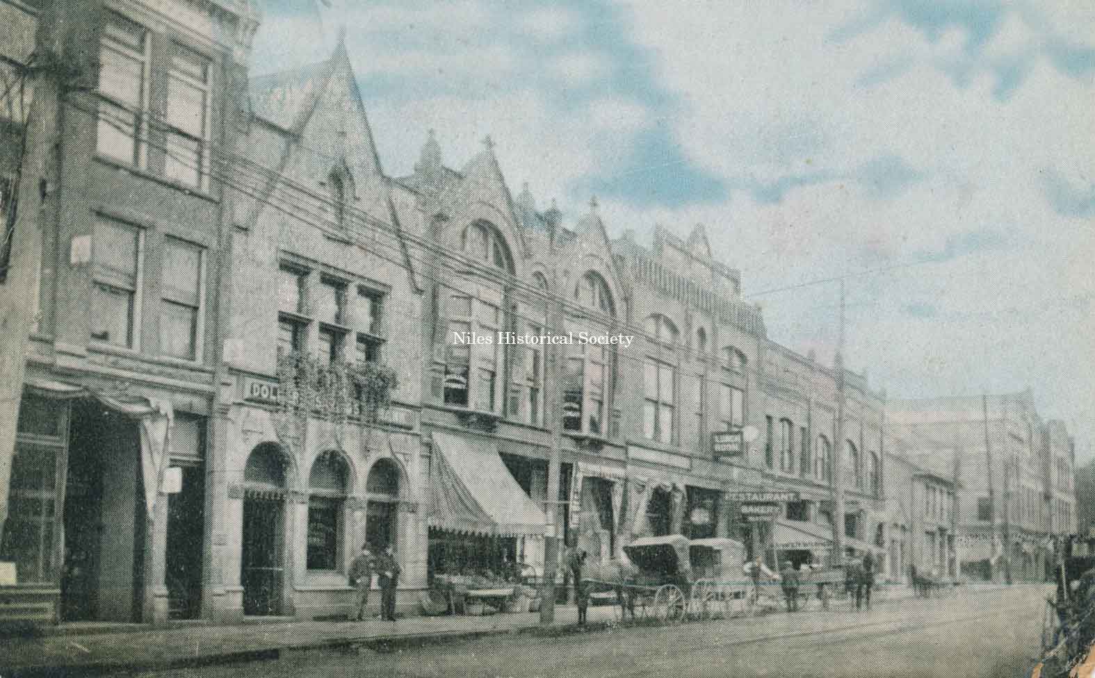 Another view of the west side of South Main Street featuring the Benedict Building on the far left of the photograph, ca 1895.