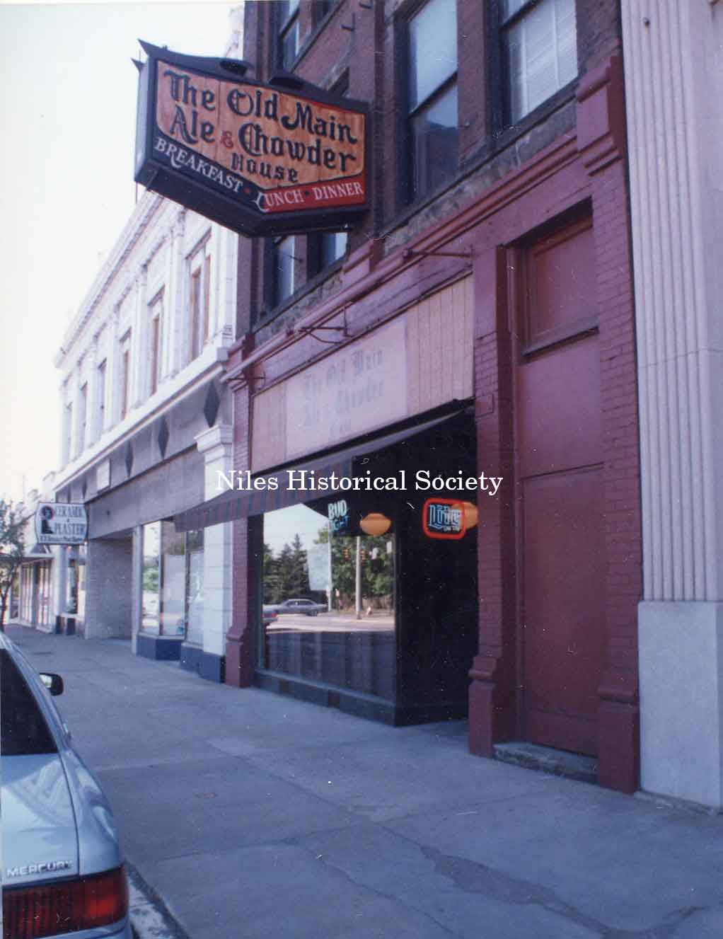 Photograph on the left shows the west side of South Main Street as it appeared at the turn of the century in 1894.