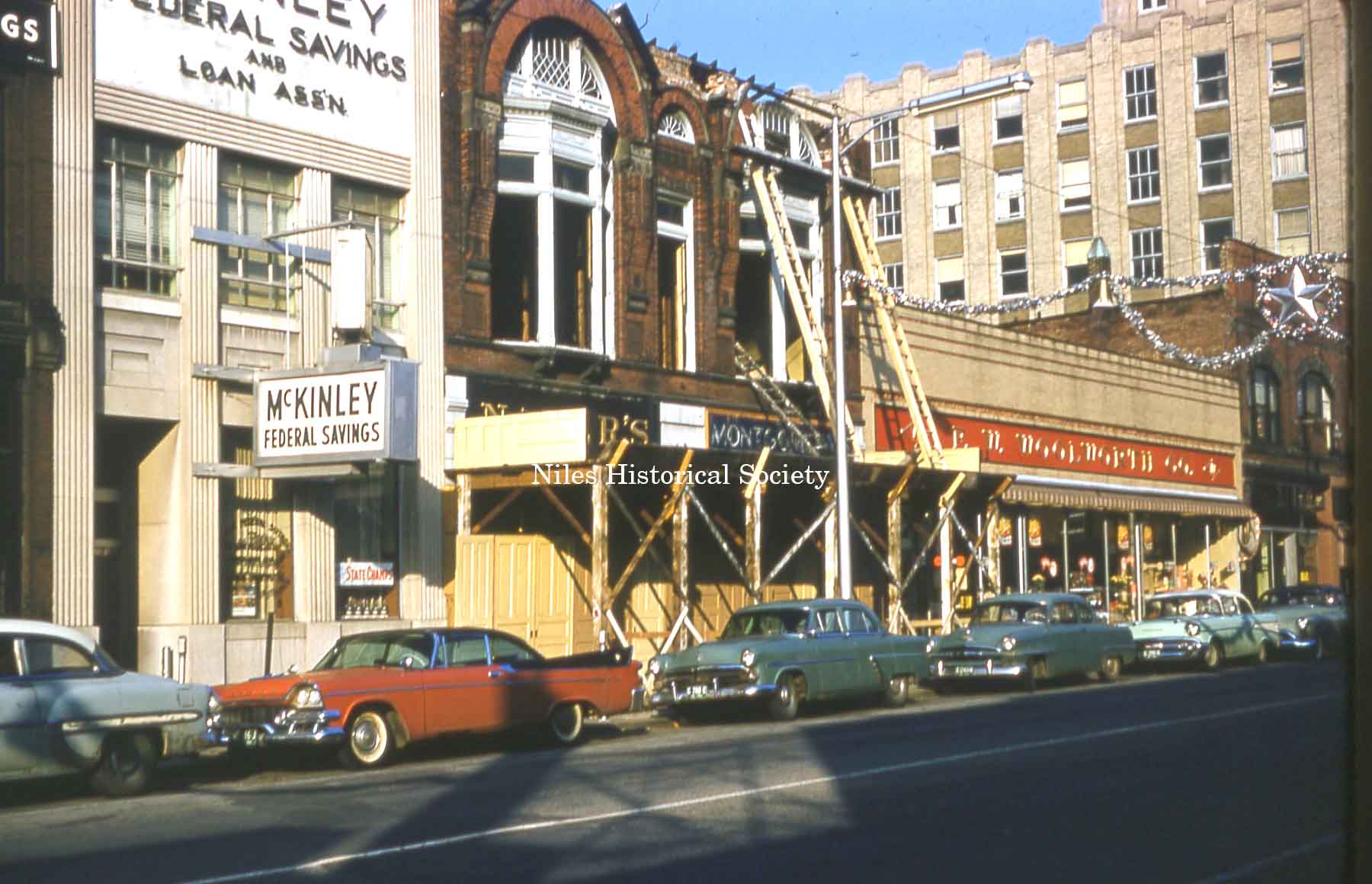 Photograph of Arden's Fine Furnishings Store and McKinley Federal Savings and Loan Building, ca 1963.
