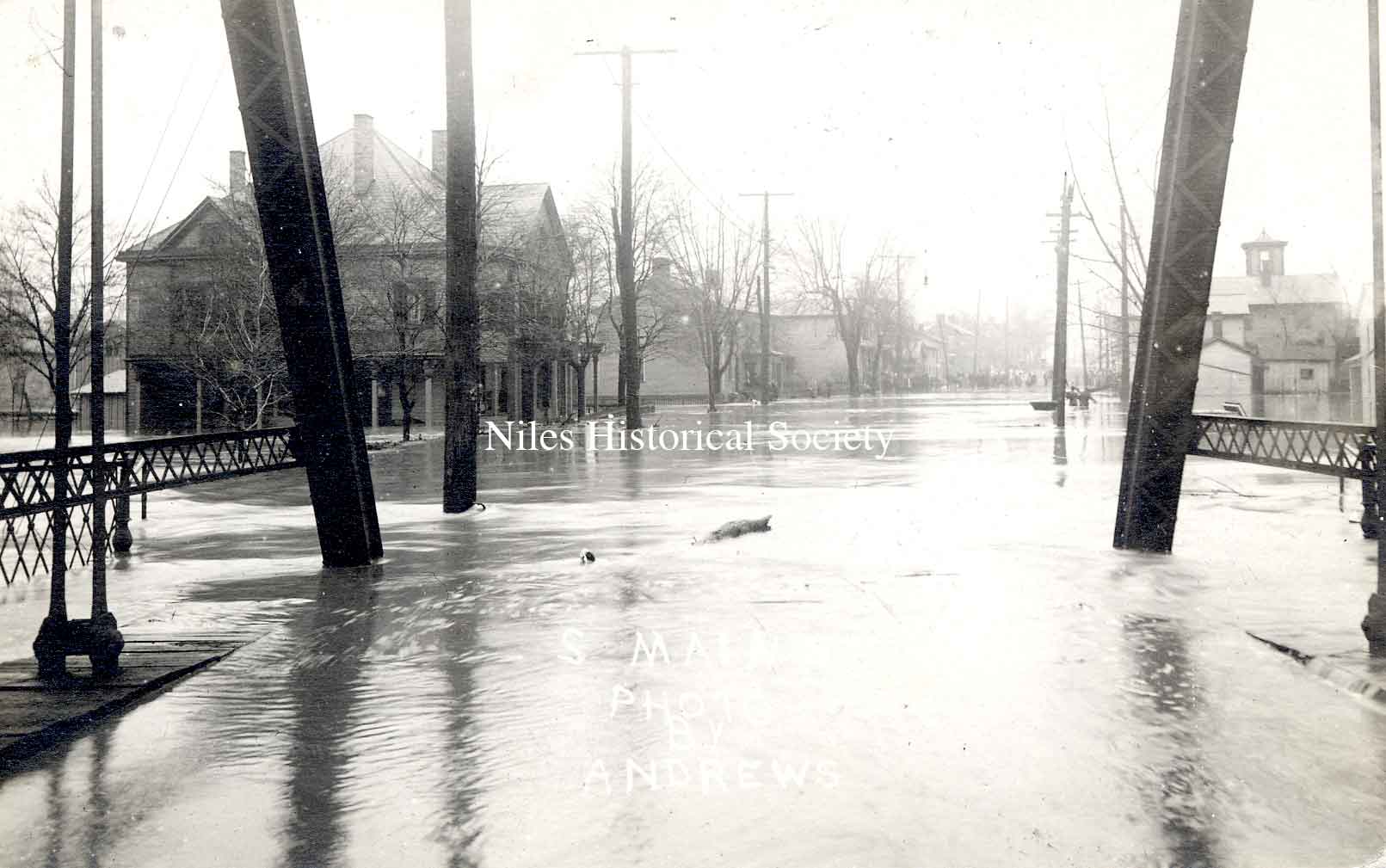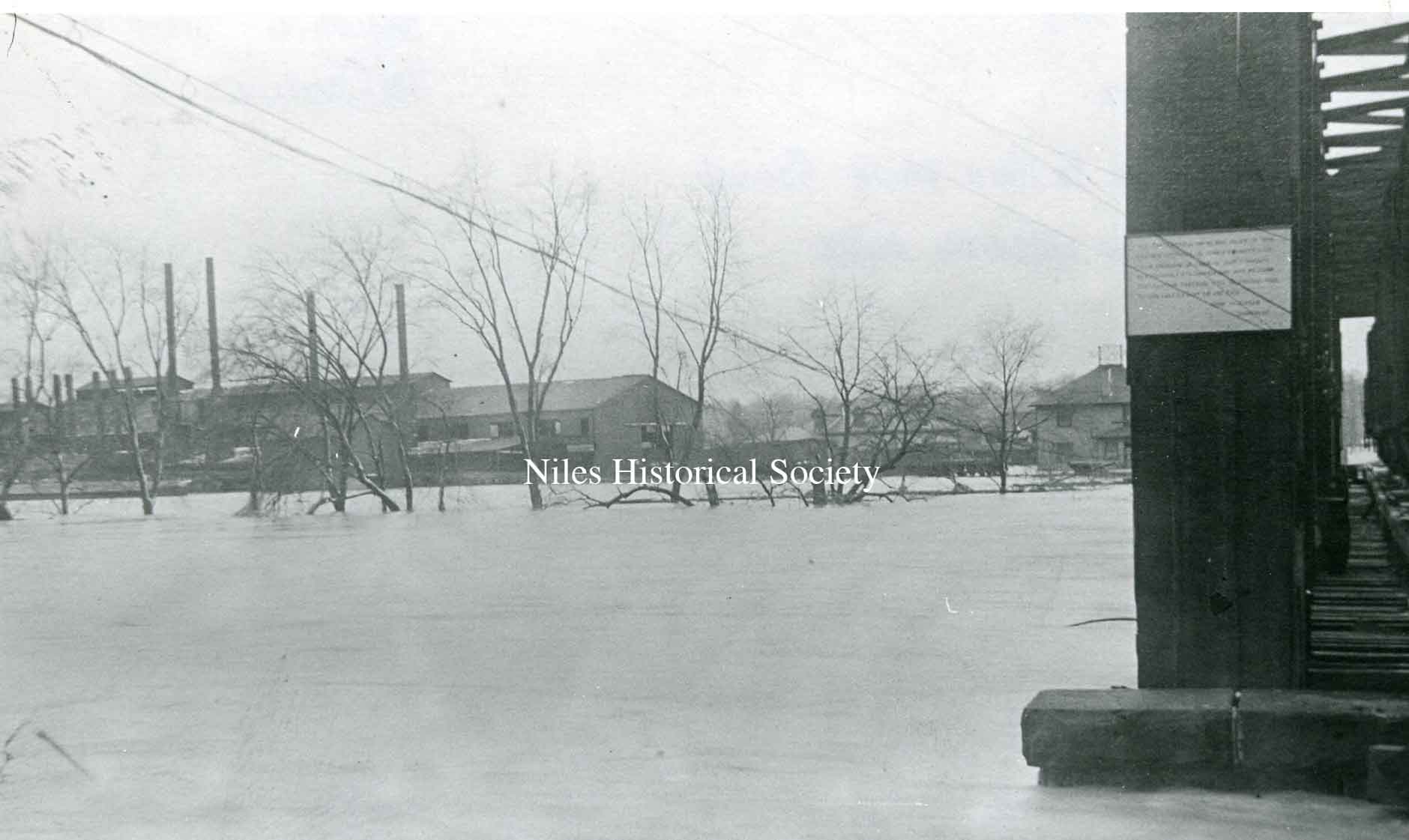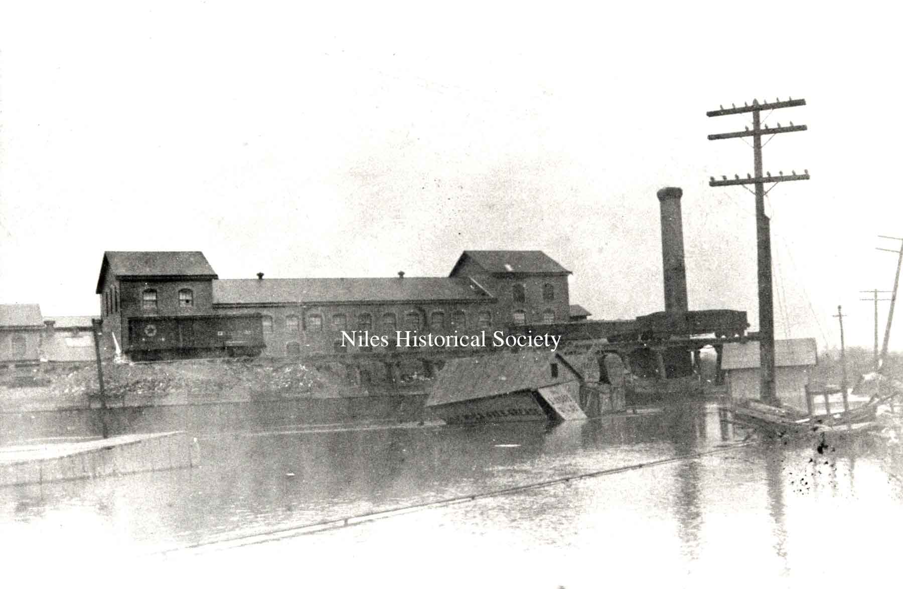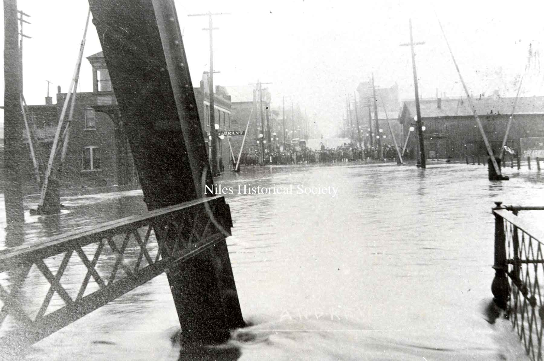 Erie railroad bridge at Church Street in Niles during the Flood of 1913 in March.