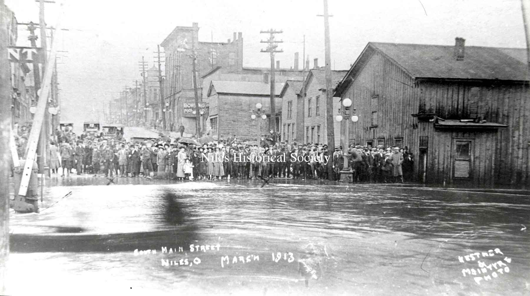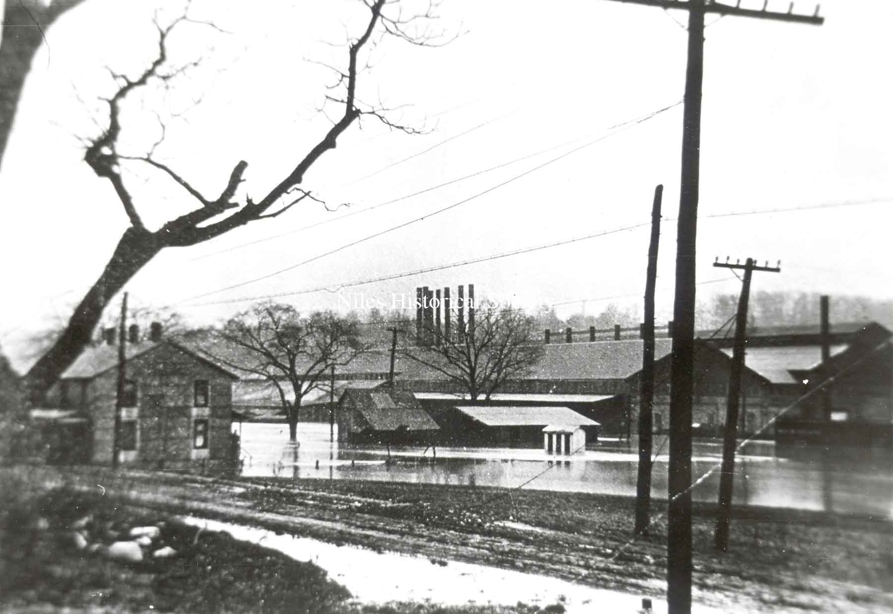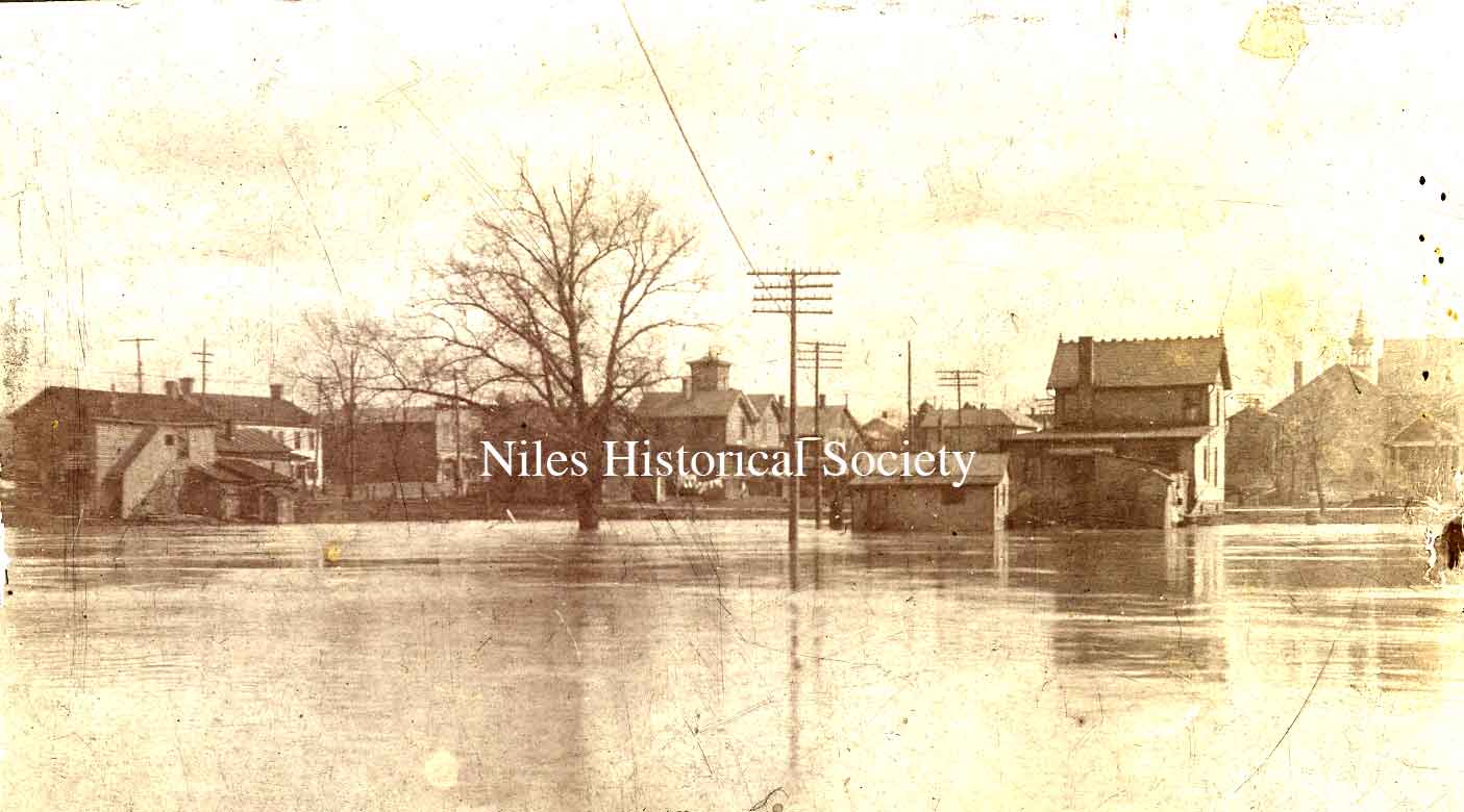 Erie railroad bridge at Church Street in Niles during the Flood of 1913 in March.