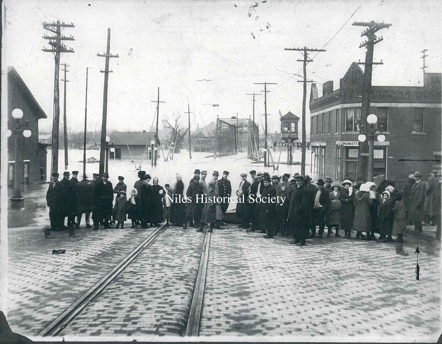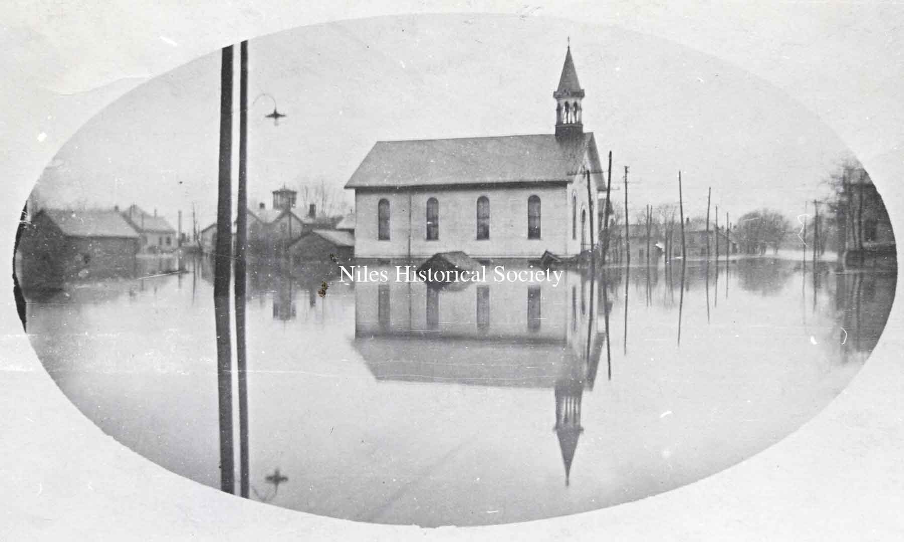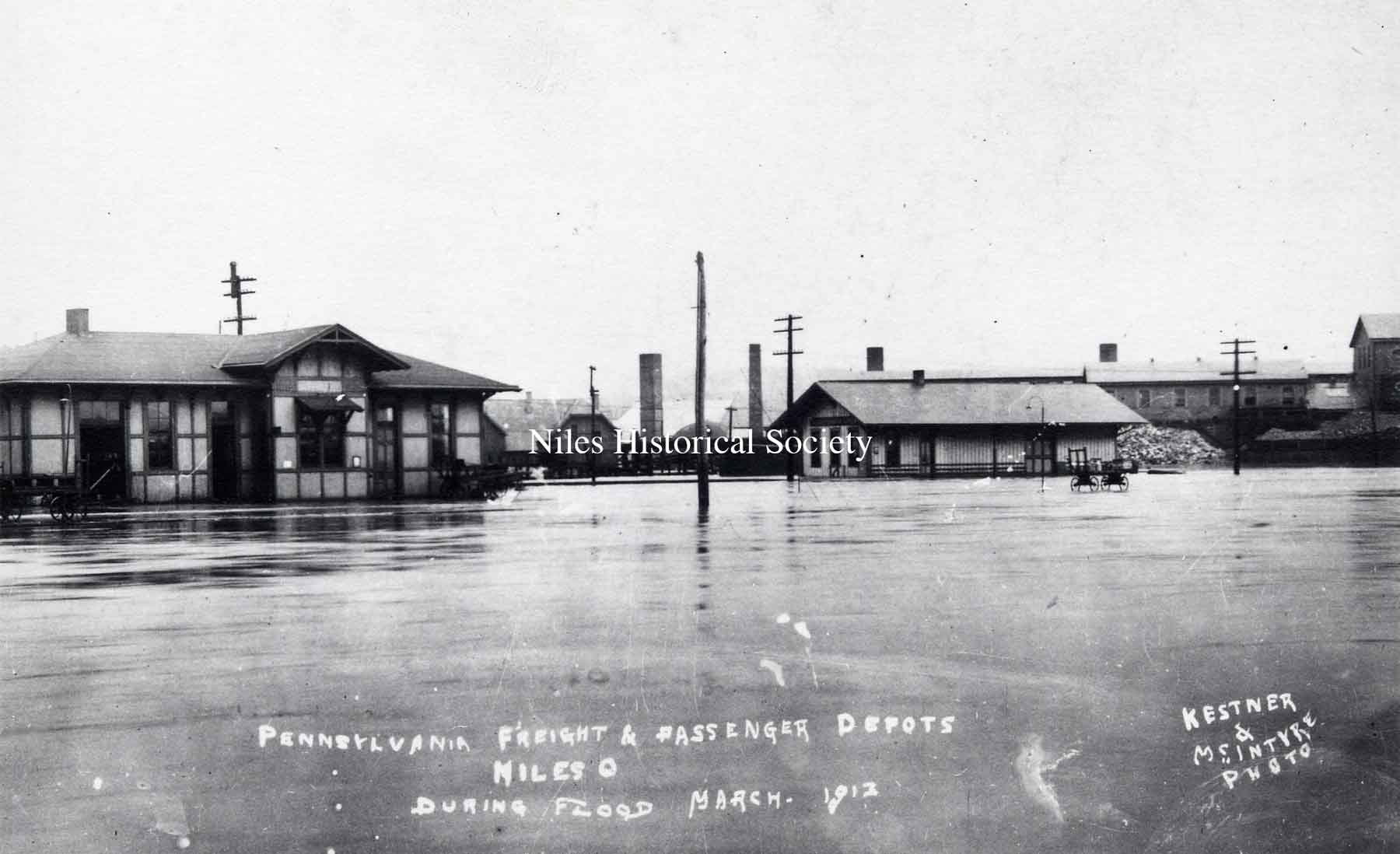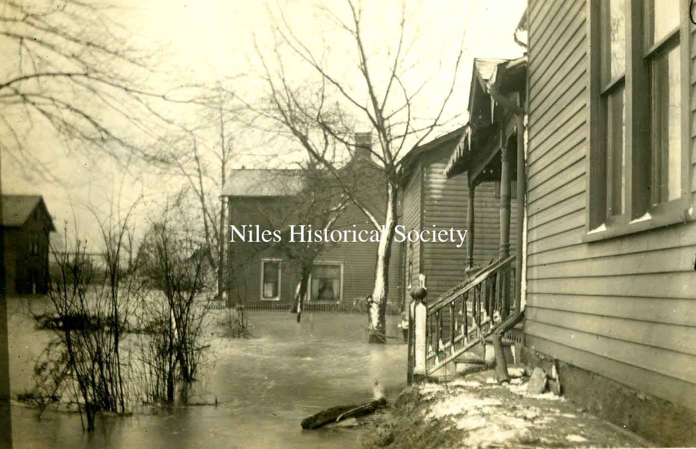 Erie railroad bridge at Church Street in Niles during the Flood of 1913 in March.