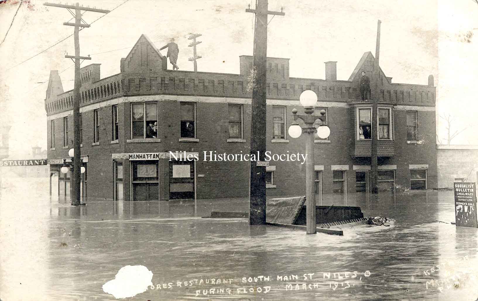 The Gilmore Restaurant and Manhattan Hotel on South Main Sreet and Water Street during the 1913 flood.