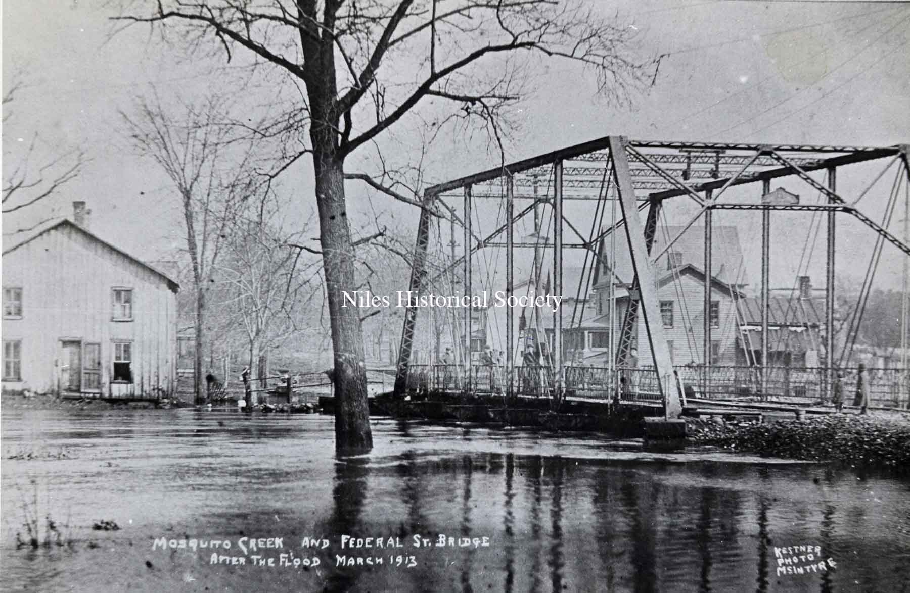 Mosquito Creek bridge over West Federal Street. At the height of the 1913 flood, the water was over the floor of the bridge.