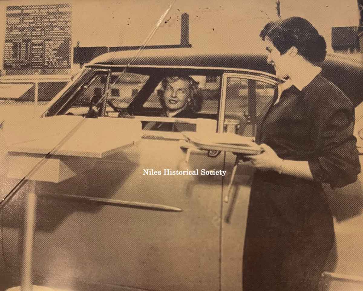 Pictured are the speakers used to place your order for food and drinks. A sliding shelf was used to hold the trays and move them closer to the car.