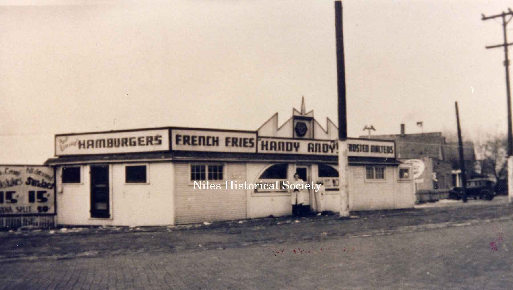A photograph, ca 1939, of the Handy Andy restaurant located on the southwest side of Robbins Avenue in McKinley Heights.