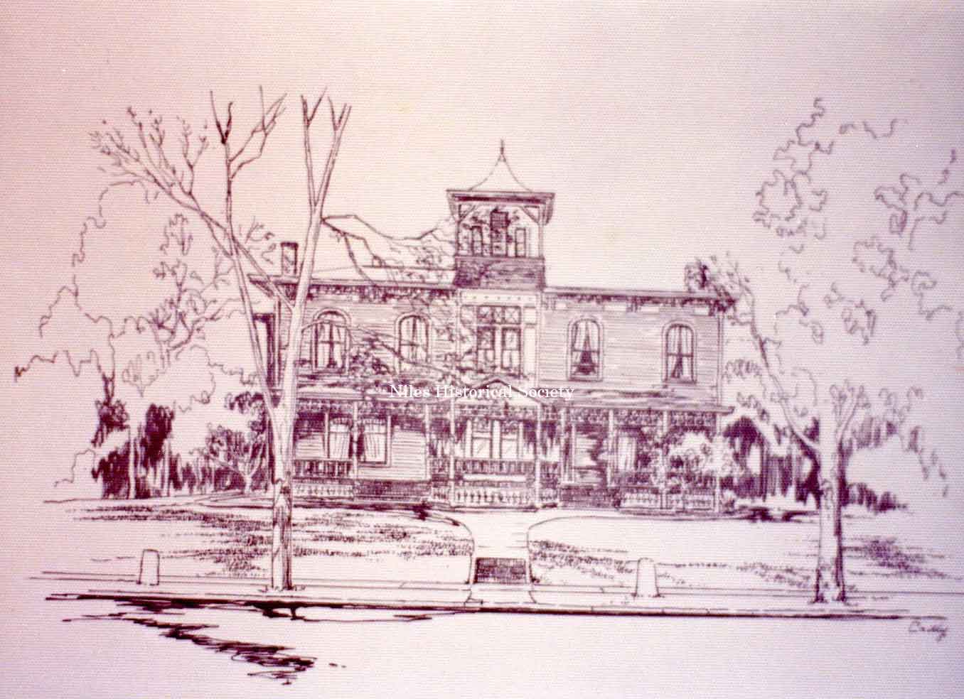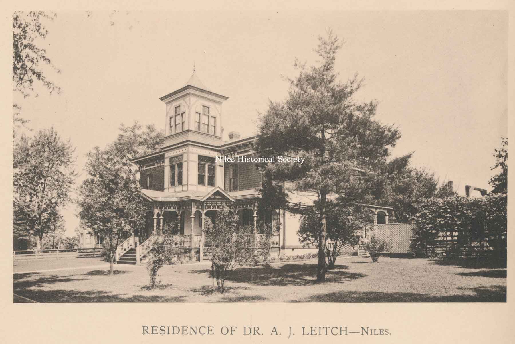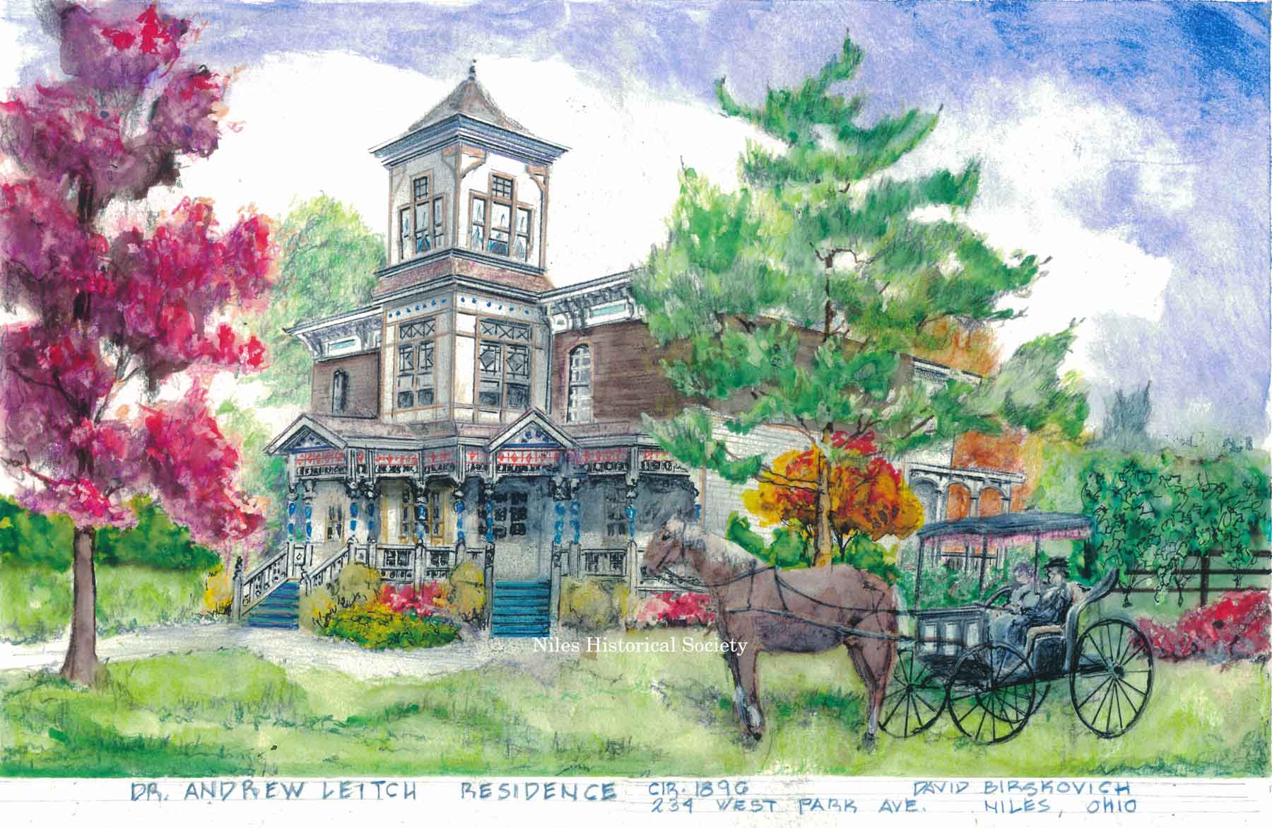 A line drawing of the Dr. A. J. Leitch residence located at 234 West Park Avenue in Niles.