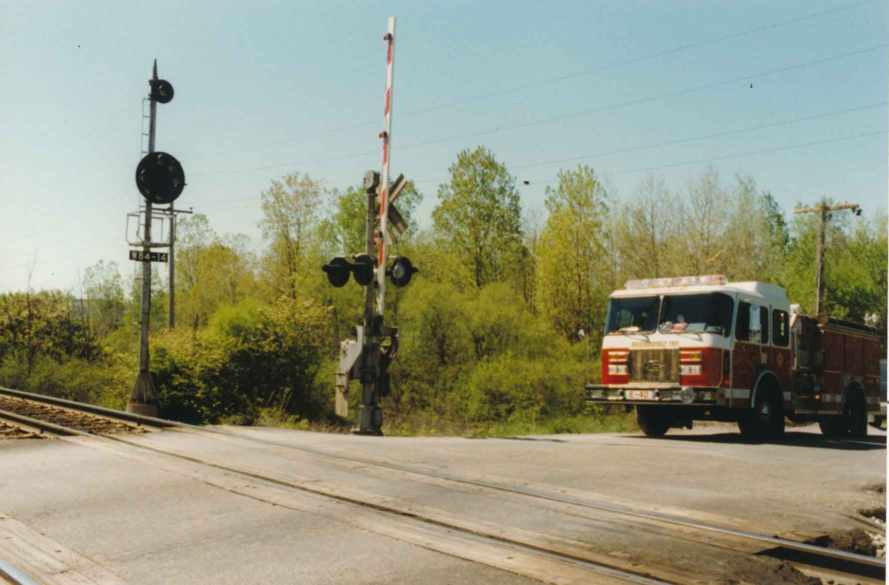 The 1994 M.M.B.A. Volunteer fire department poses in front of house they were called to extinguish the flames.
