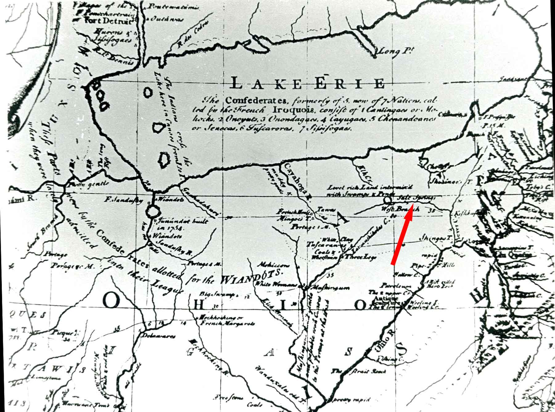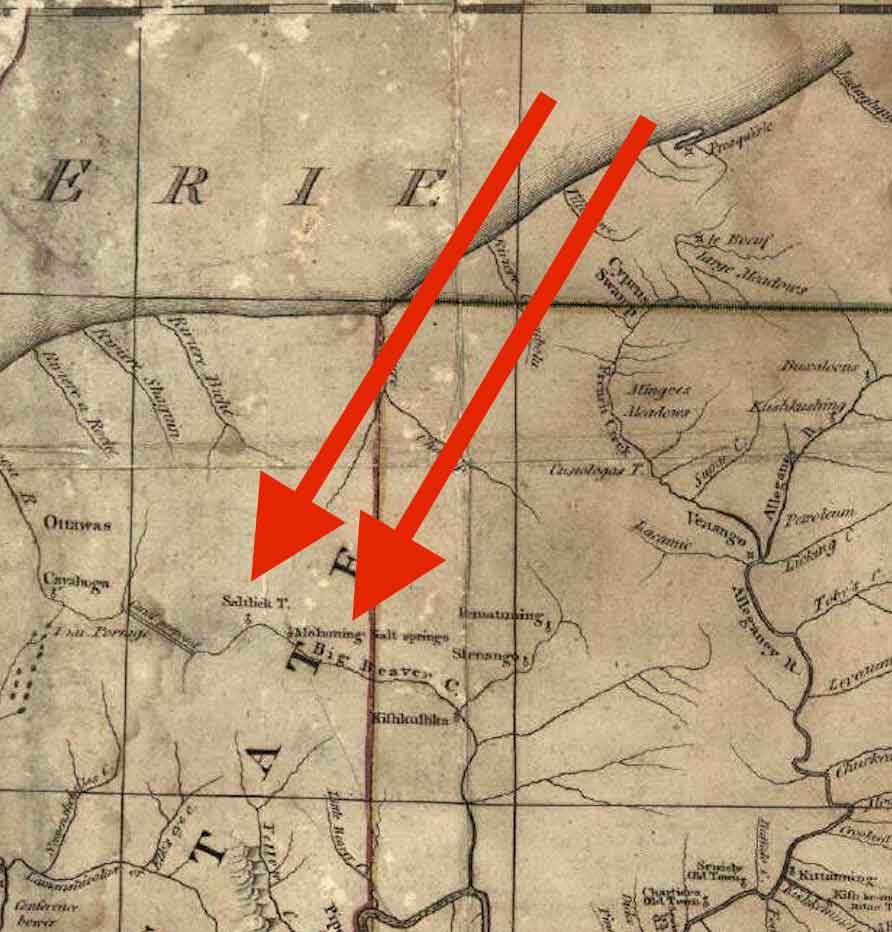 Lewis Evans Ohio Map of 1755 shows the Salt Springs existence was known in 1755.