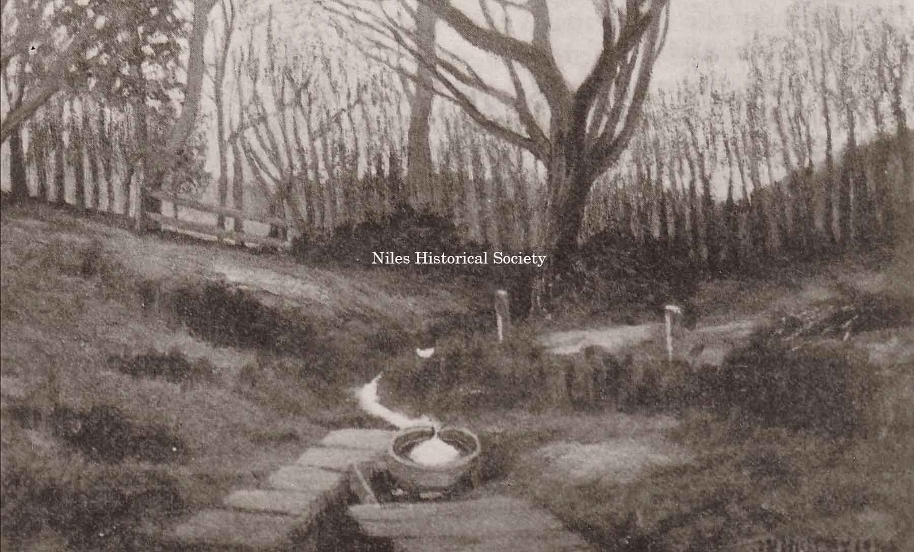 This illustration is from a painting by Joseph N. Higley, from a photograph taken by him about 1903, just before the Salt Springs were covered over by the B & O railroad fill.