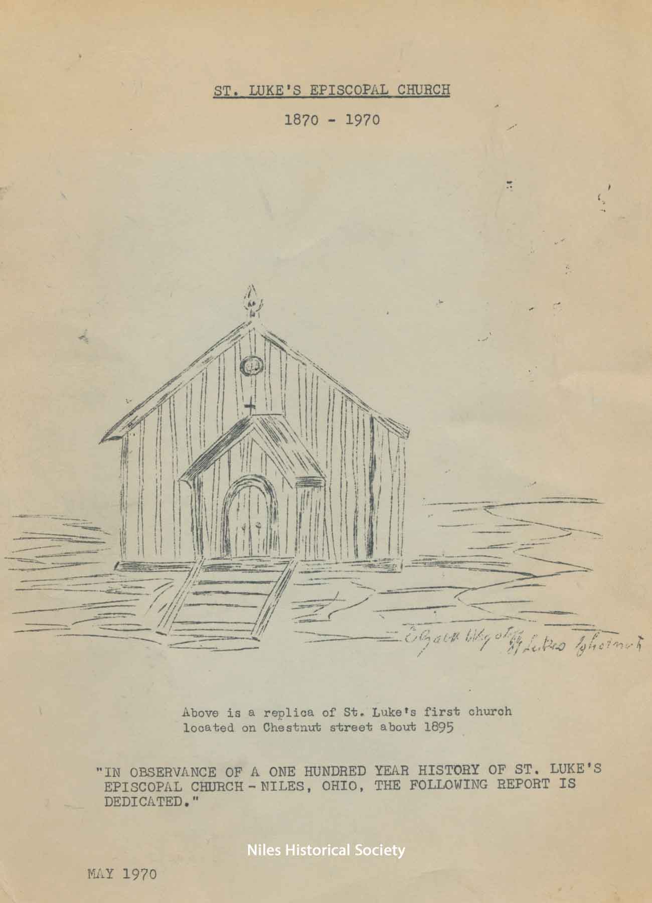 Cover of the history of St. Luke’s Episcopal Church pamphlet published May 1970 in recognition of its 100th year celebration, 1870-1970.