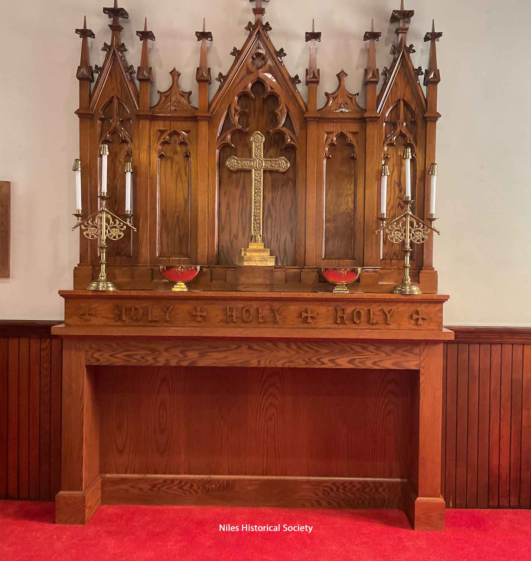 Photograph of original altar with crucifix.