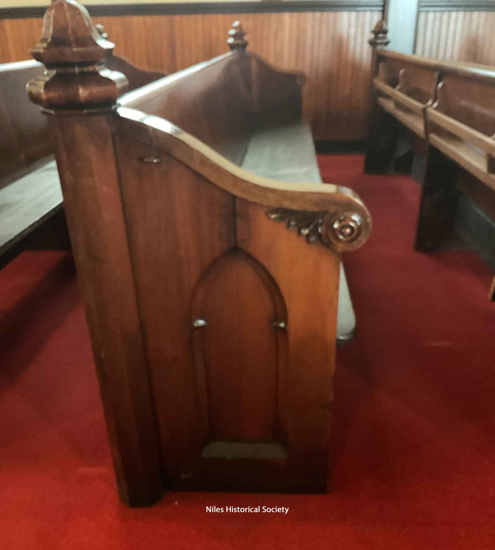 Close-up detail of pew.