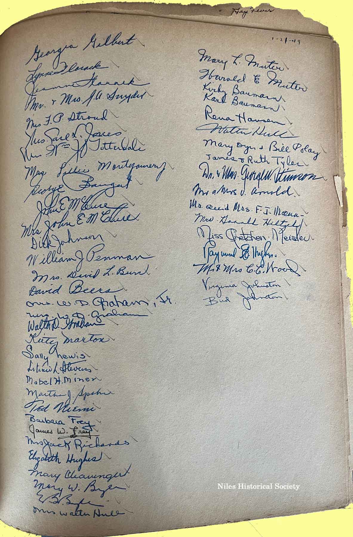 Page from guest list for the first production of “Hay Fever” – January 21, 1949.