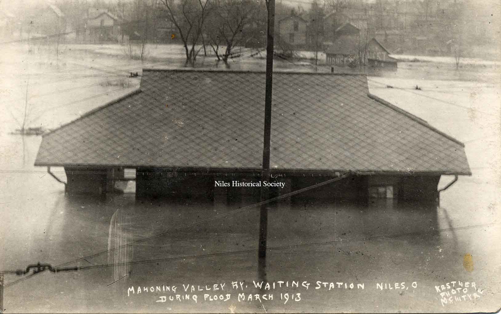 Photograph of the trolley shelter taken from the Erie Railroad bridge during the 1913 Flood. PO1.1012