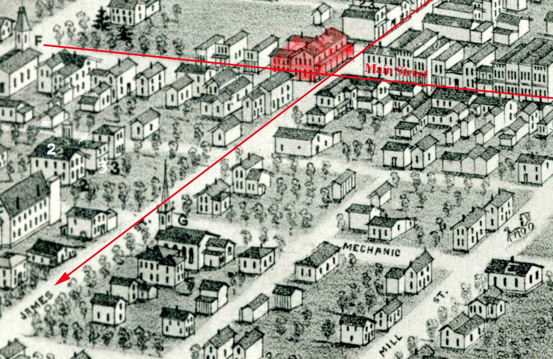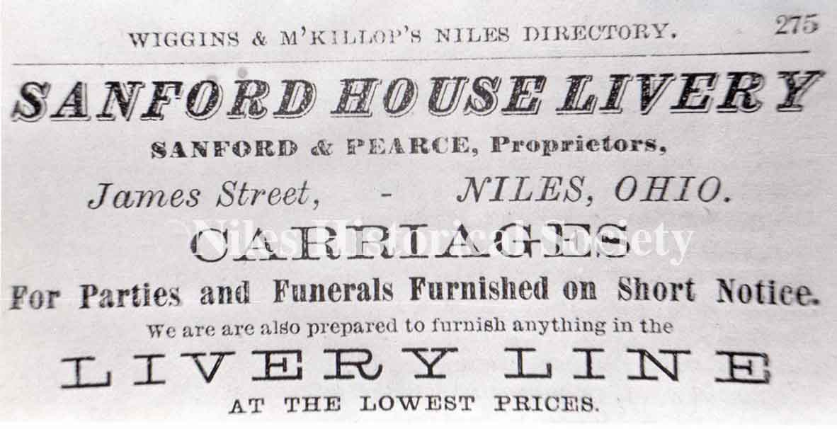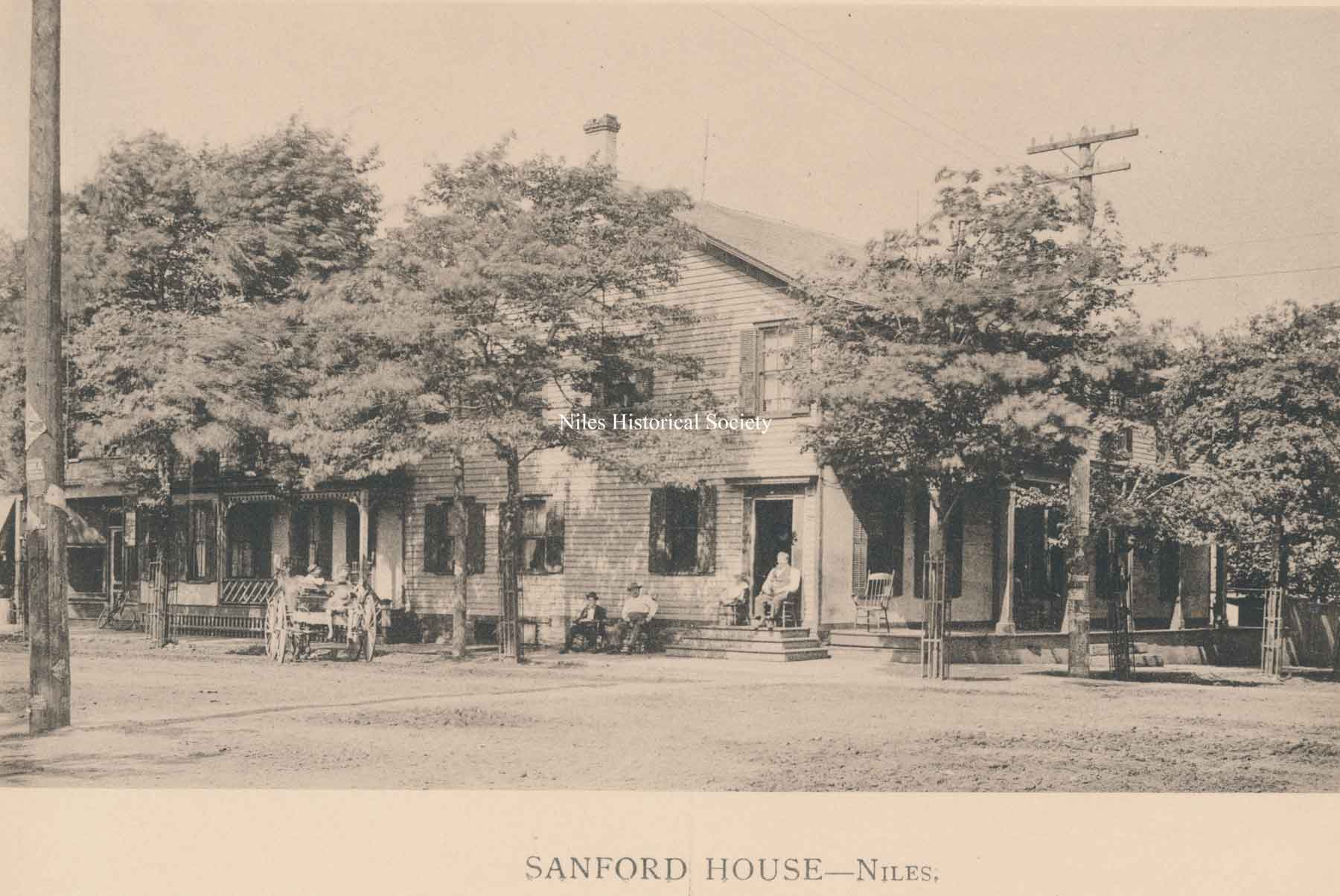 In 1836, L.W. Sandford built the Sandford House which is highlighted in red below in a section of the Panoramic View of Niles, Ohio, 1882.