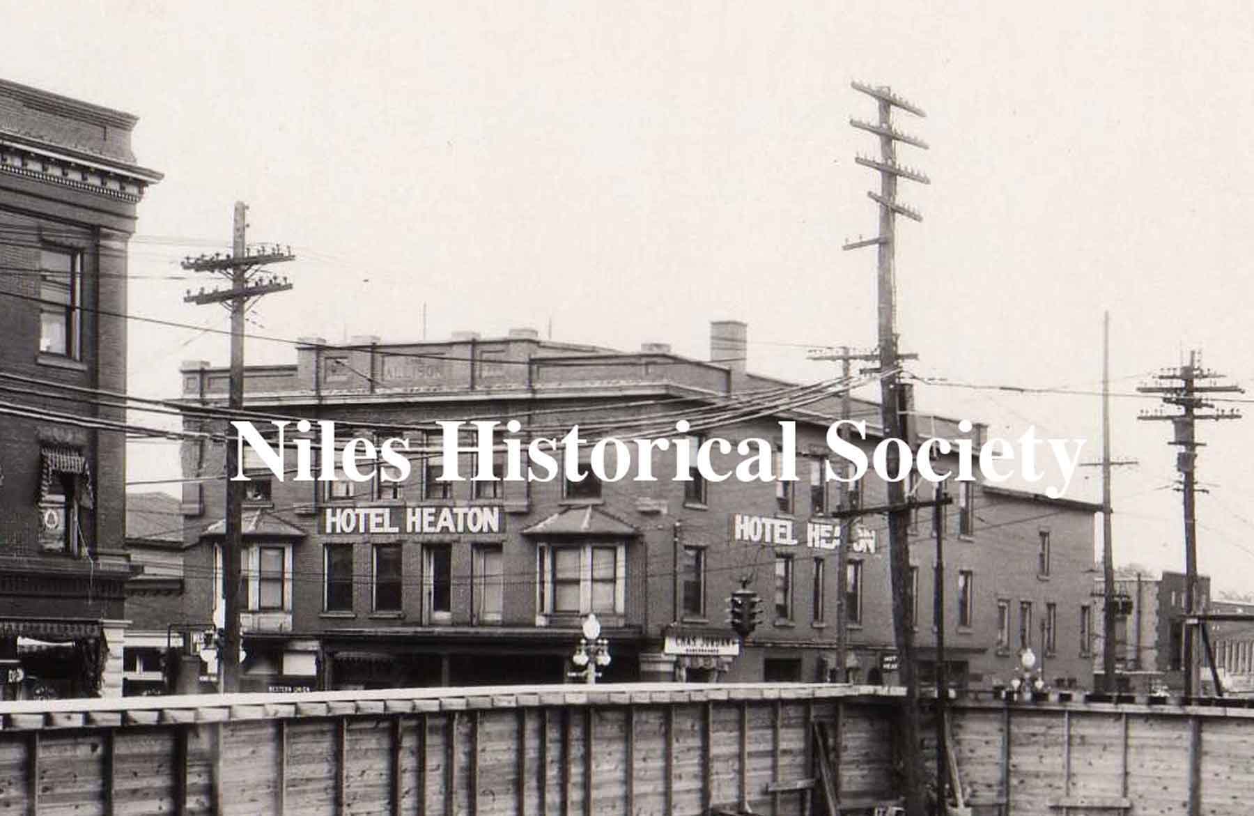 The view looking diagonally across Main Street from the construction site reveals that the name of the Allison Hotel has been changed to Hotel Heaton.