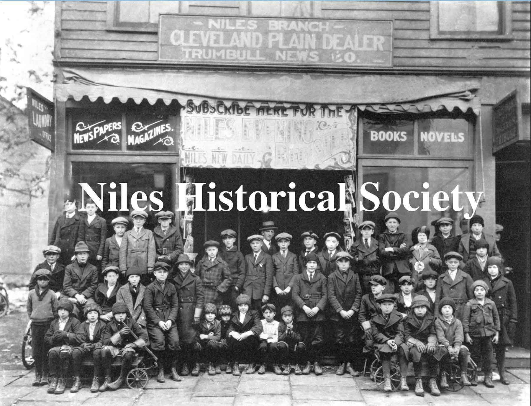 The photograph on the left shows the newsboys in front of the newstand where the Harris House was located.