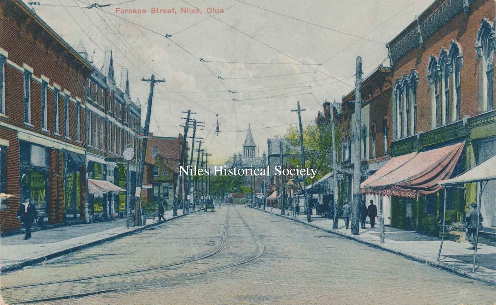 Erie Street view of the Niles Car & Manufacturing Co., makers of one of the finest lines of plush electric cars of the area