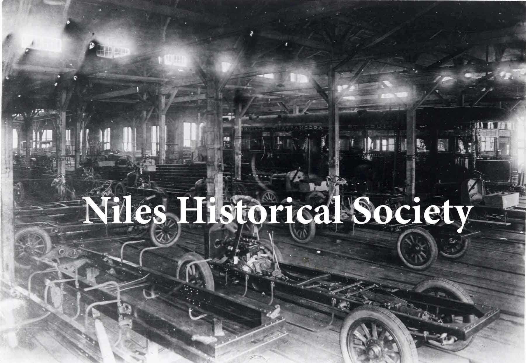 Inside the Niles Car & Manufacturing Co. about 1915 when the streetcars were being phased out and truck chassis were being built.