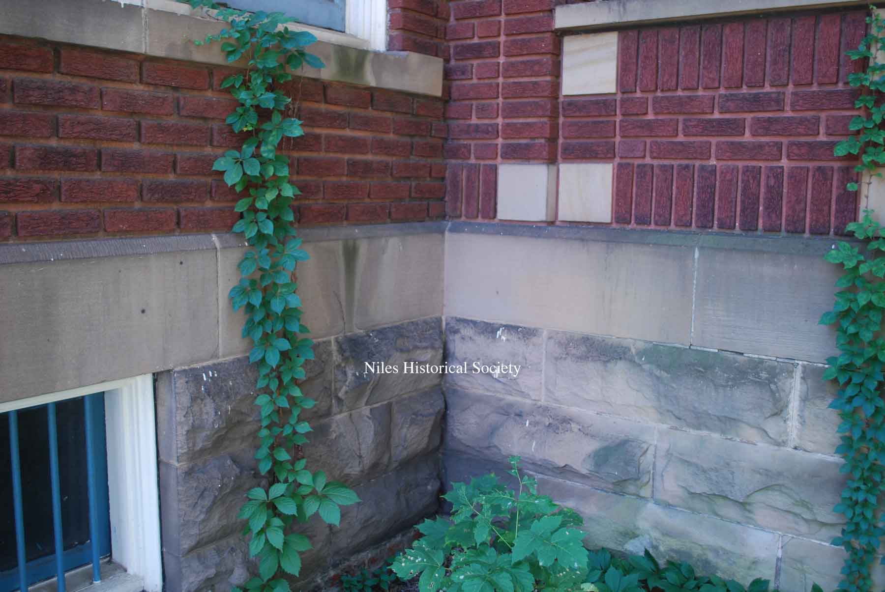 View of cut stone and brickwork.
