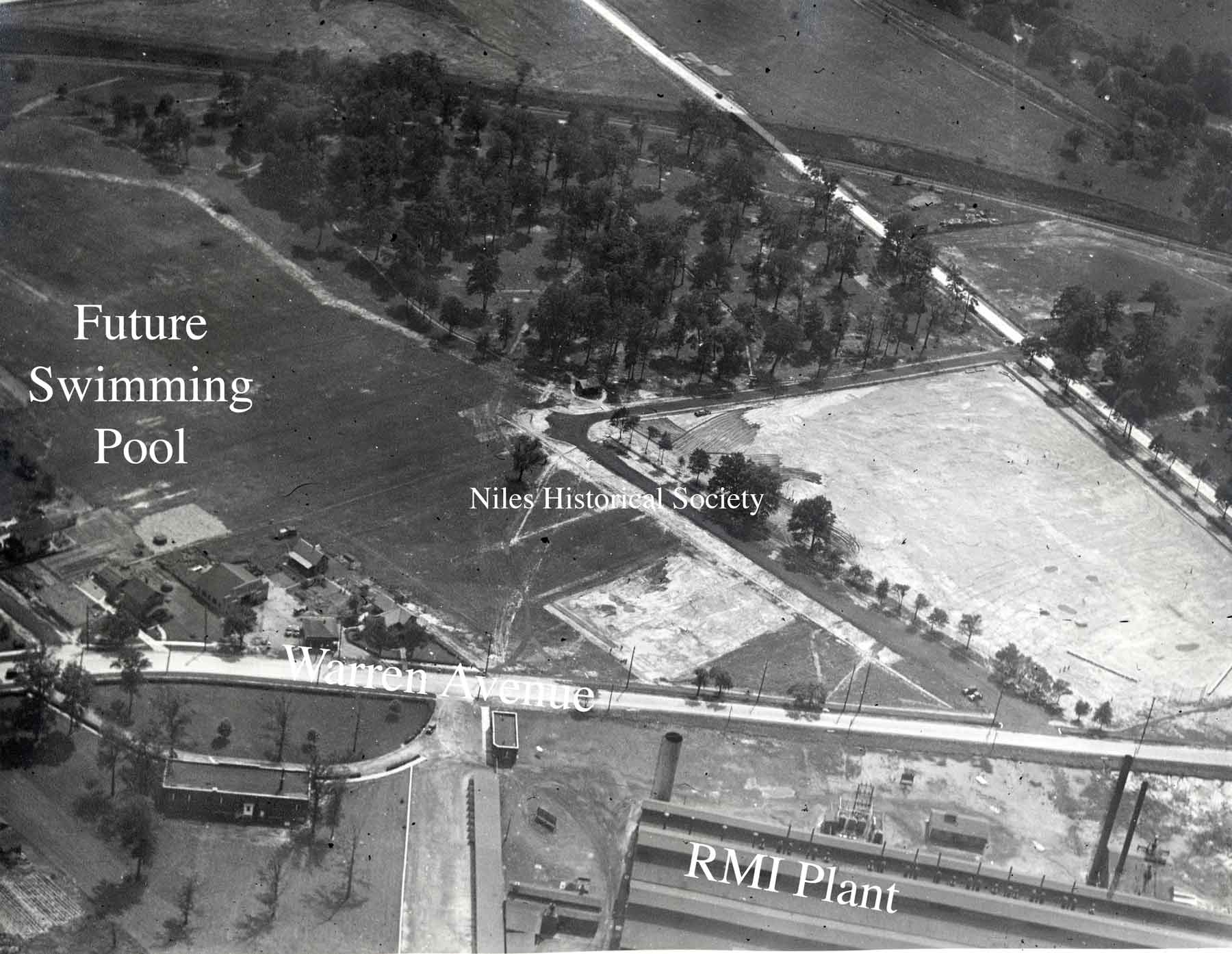 Aerial view of the land donated to the City of Niles, this would become Waddell Park.