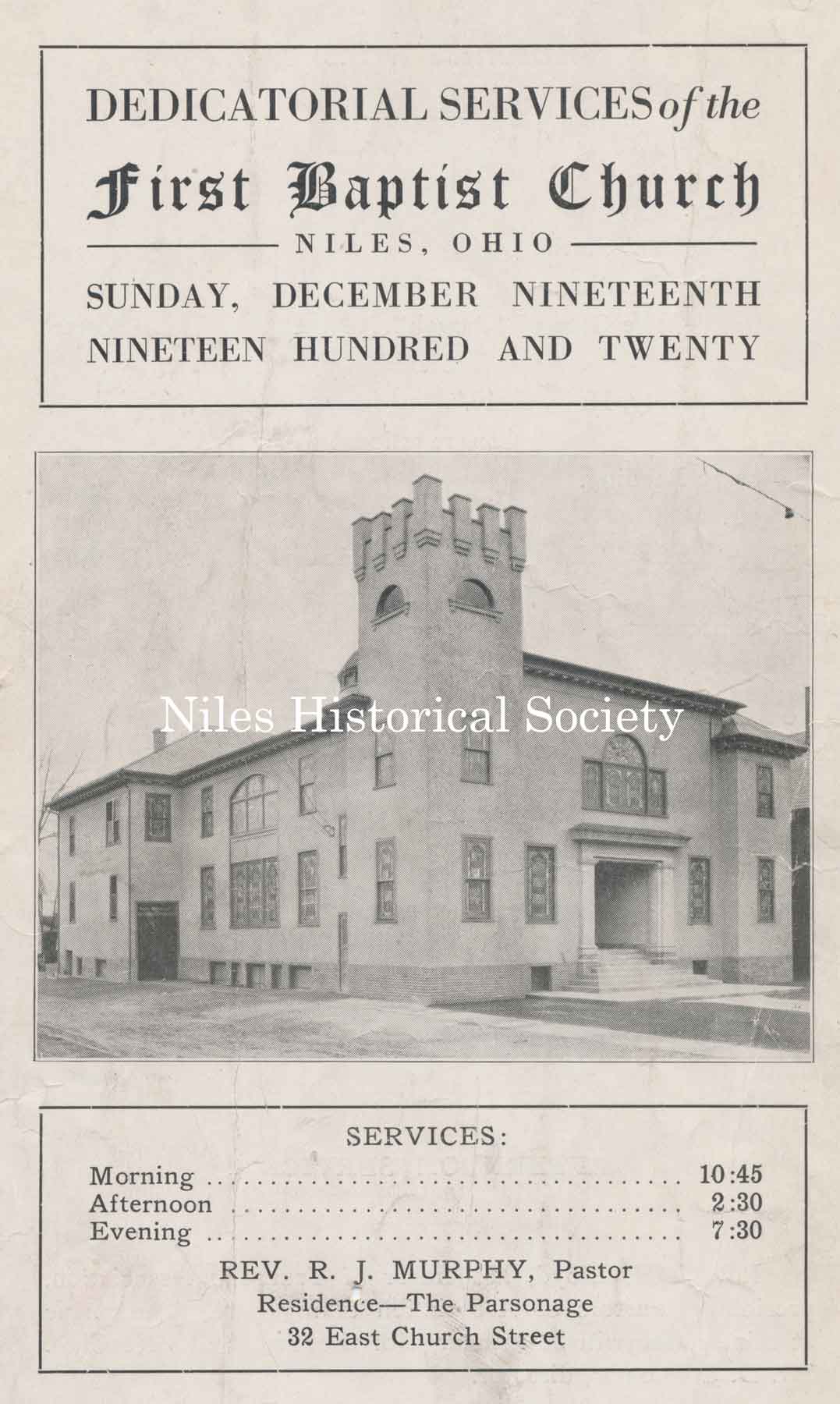 Ground was broken in March 1892 and a frame church building was erected at 26 East Church Street and completed that same year. The following year a parsonage was built adjacent to the church building. This building was used as the Pastor’s home until 1933 after which it served as a Sunday School Annex.