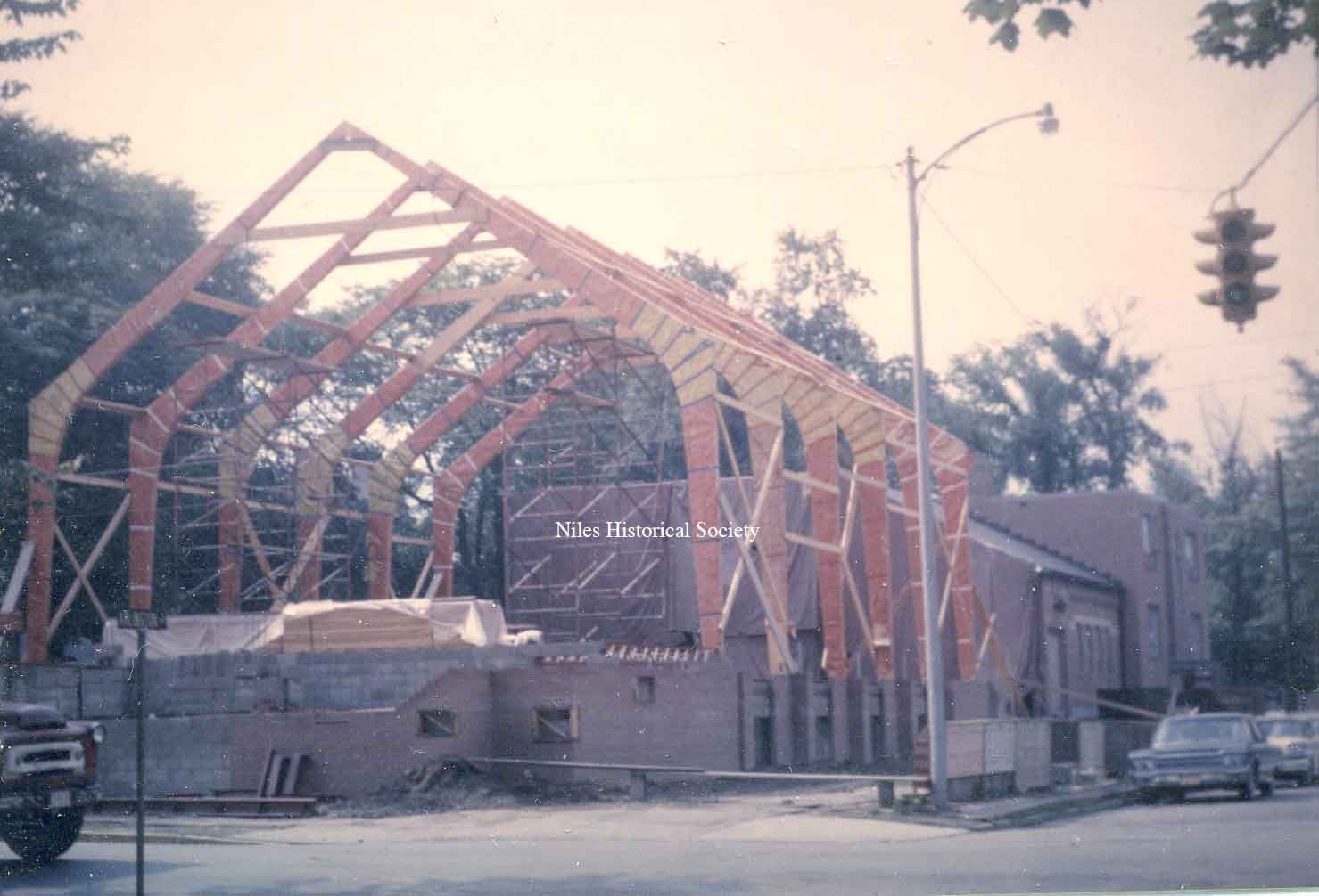Exposure of the construction of the new building of First Christian Church located on the corner of Arlington and Church taken during the summer of 1966.