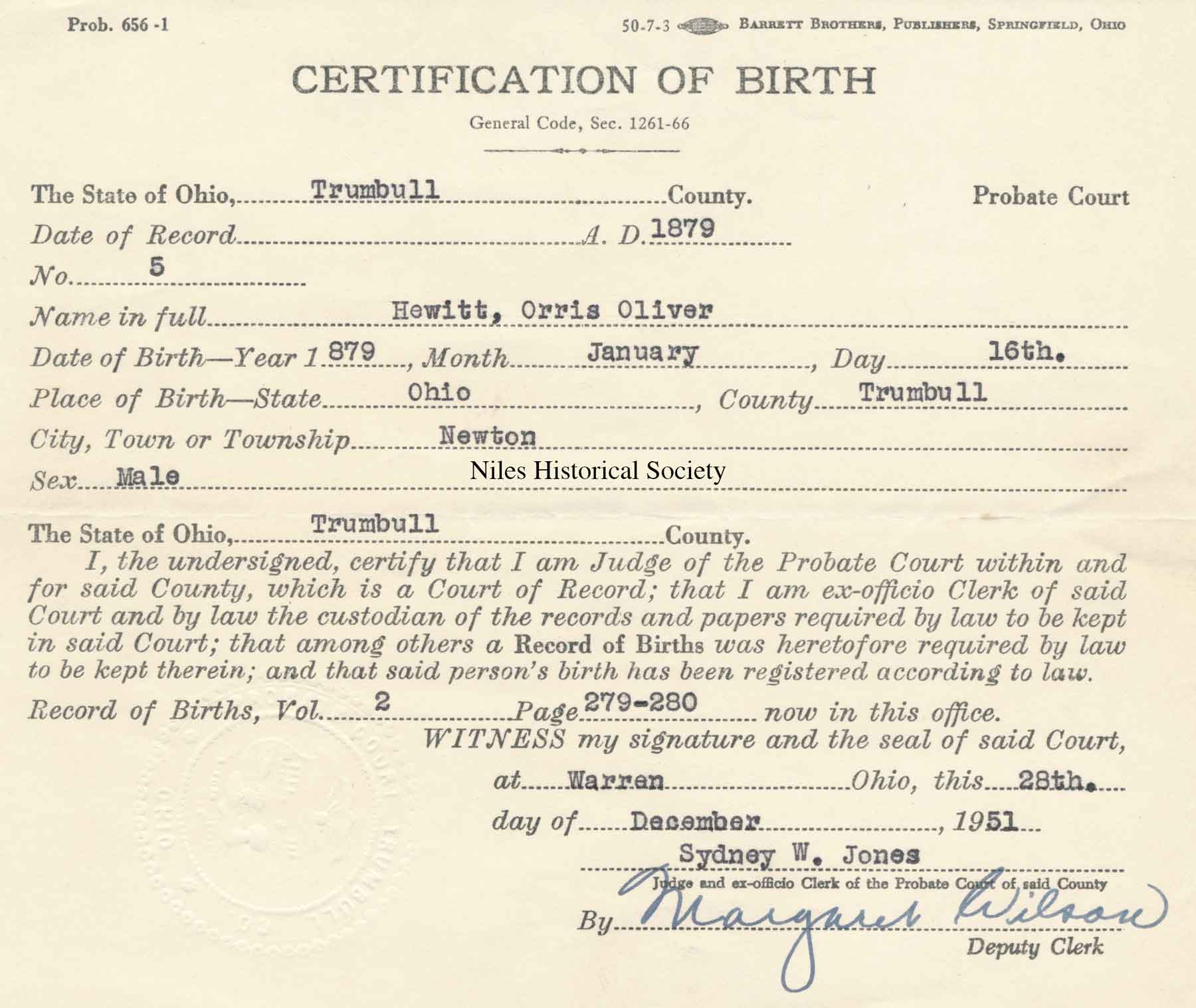 Hewitt birth certificaate