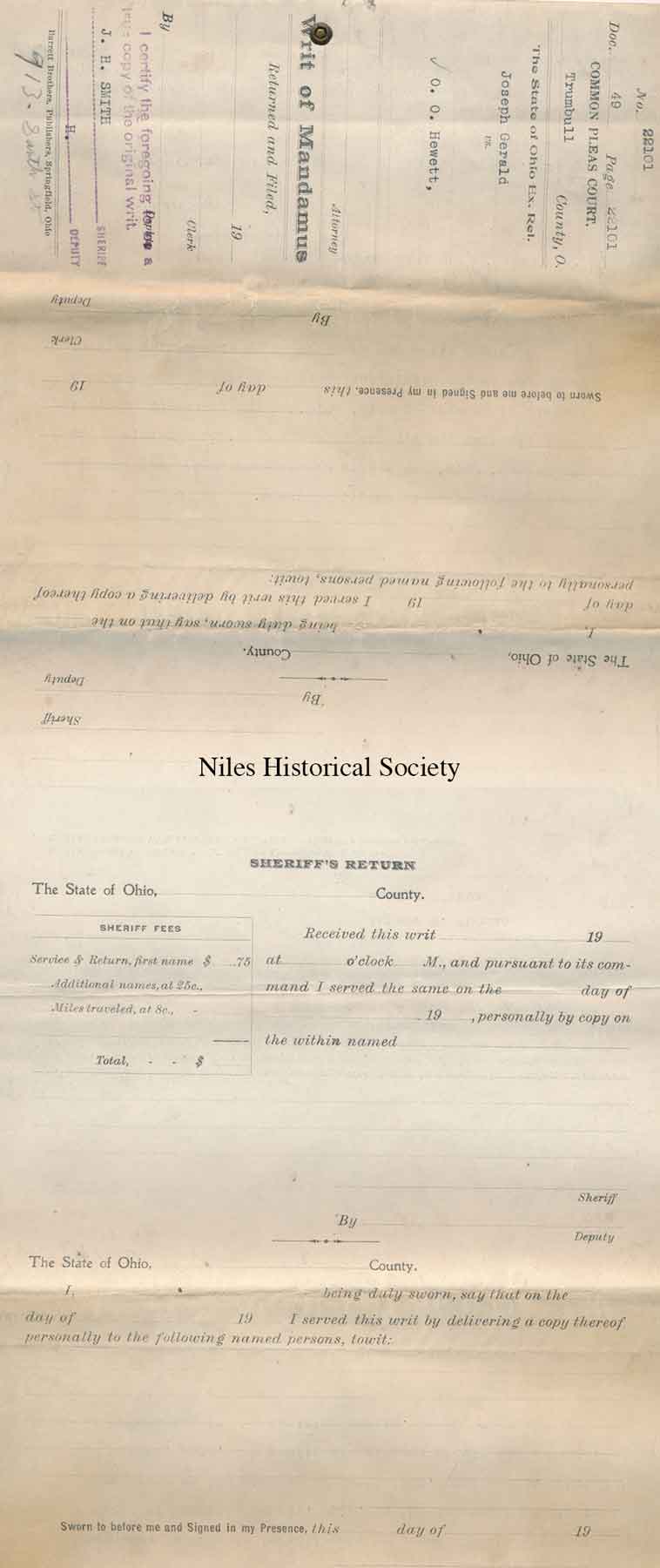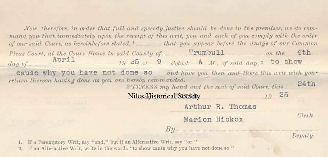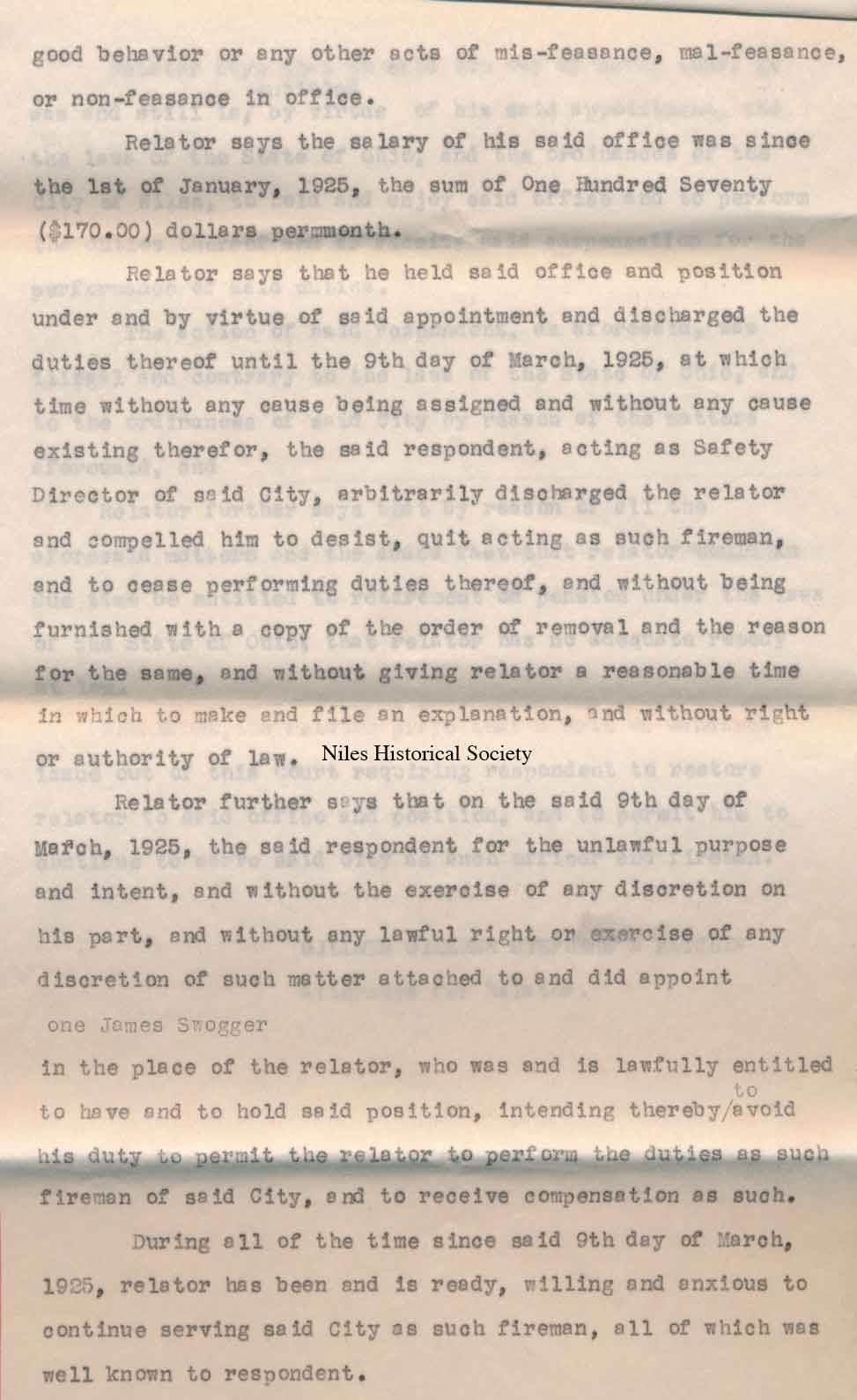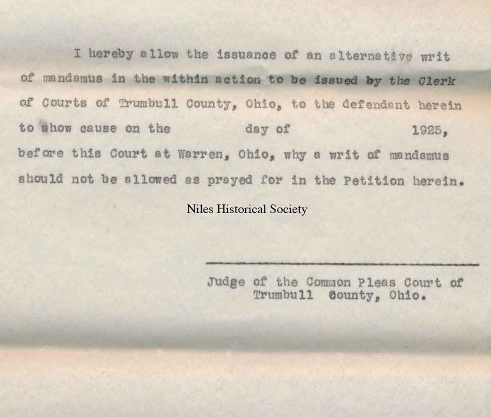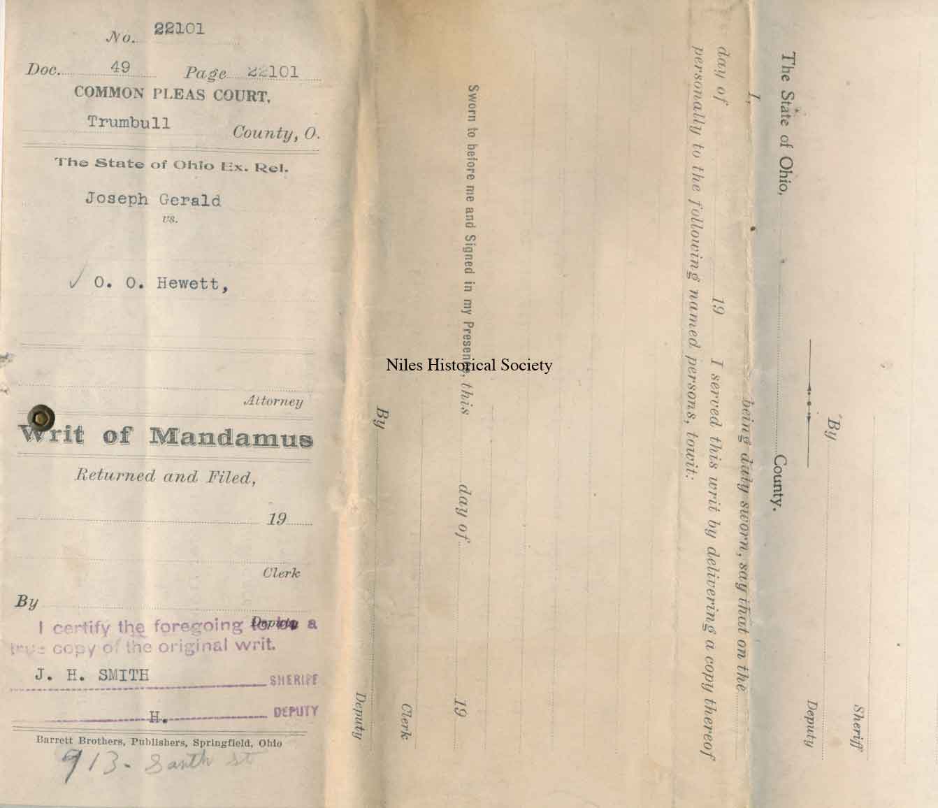 1925 lawsuit by police officer Joseph Gerard against City of Niles and Safety Director, O.O. Hewitt.