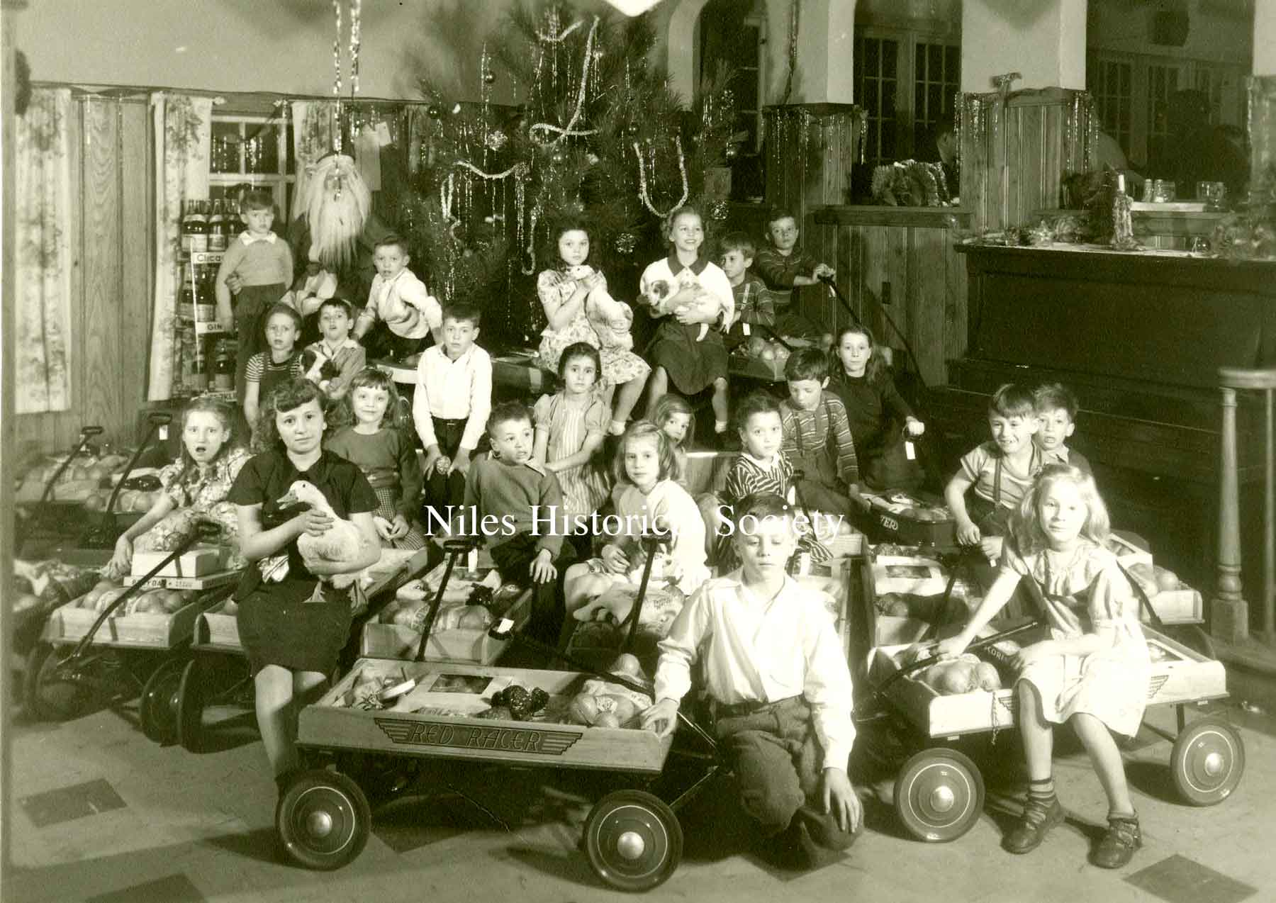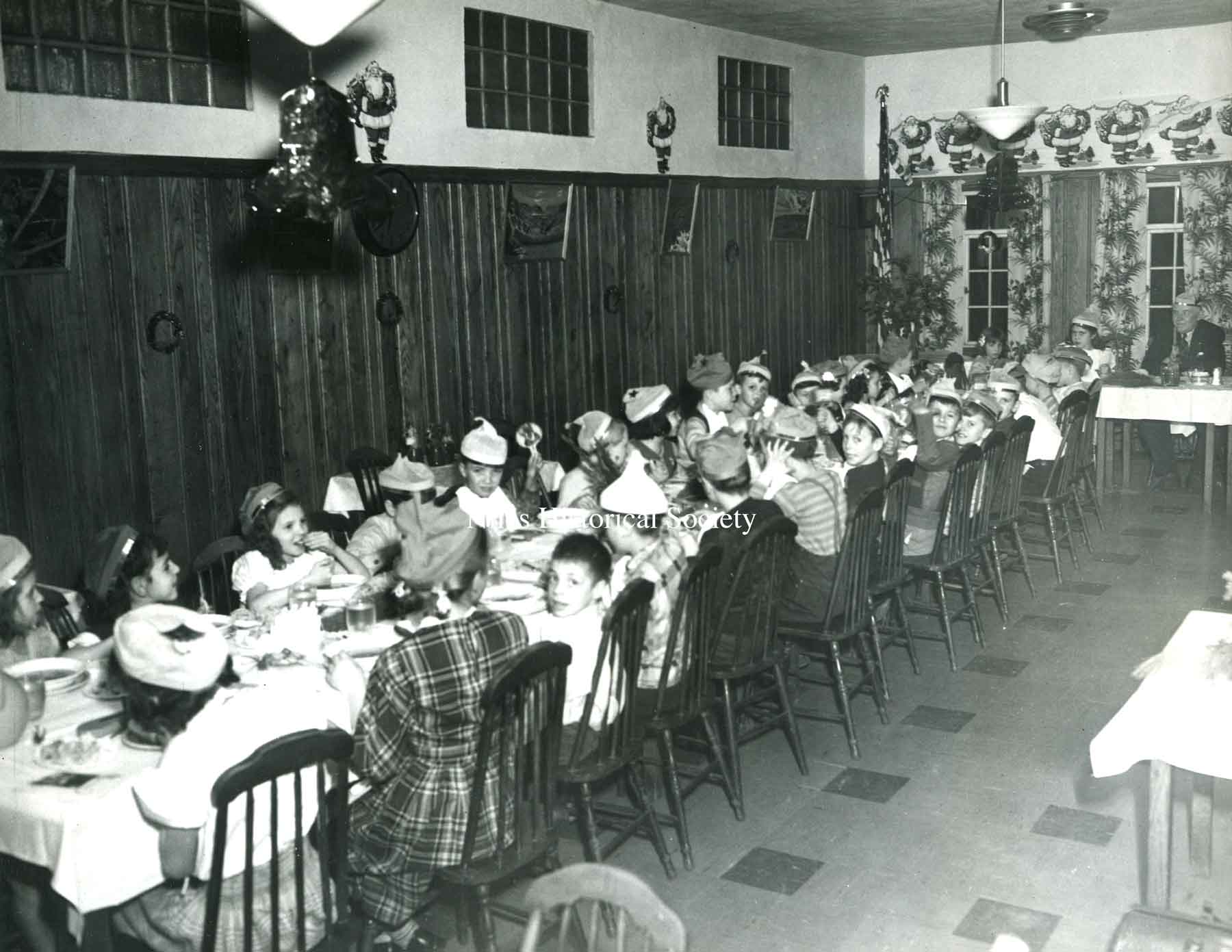 A Christmas party for the campers from the "Fresh Air" camp sponsored by the Niles Kiwanis Club in 1954.