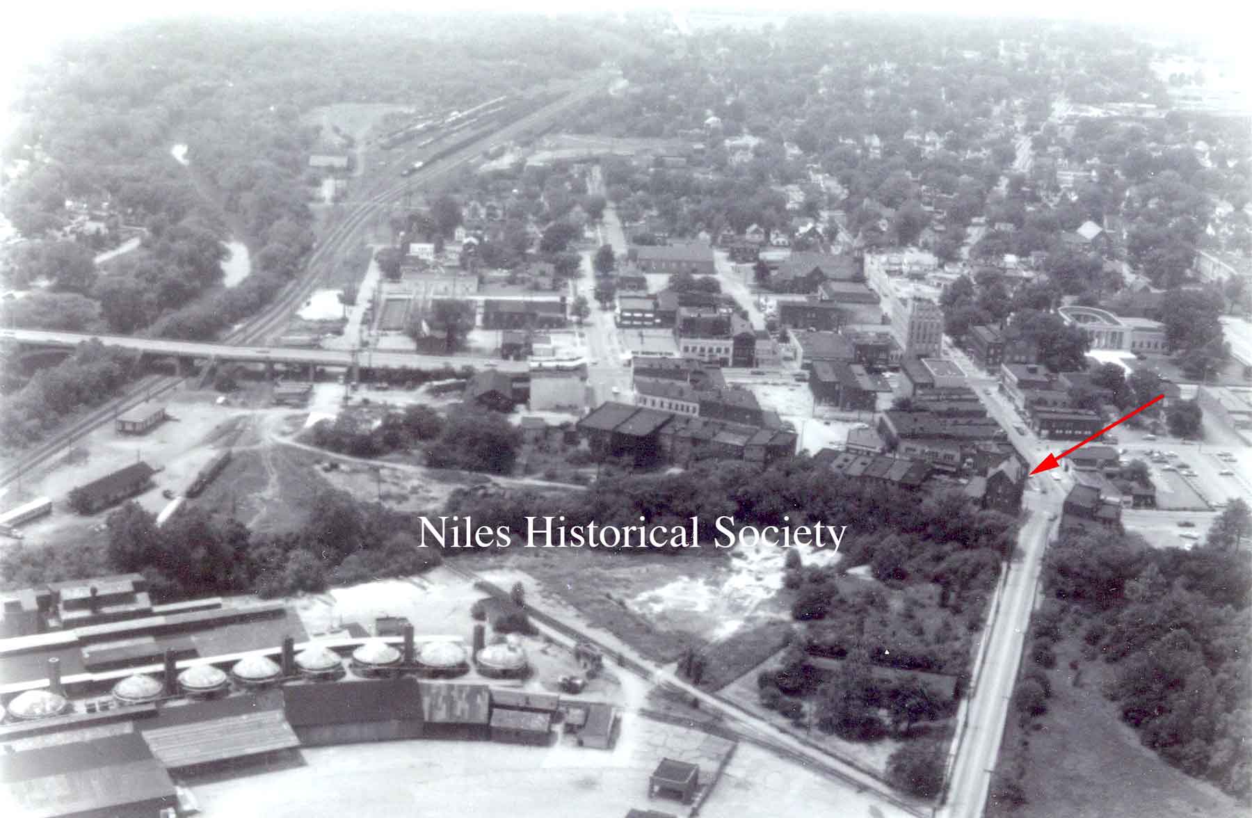 Aerial map showing Park Avenue, the Mango Building, and Niles Firebrick Company. P02.474