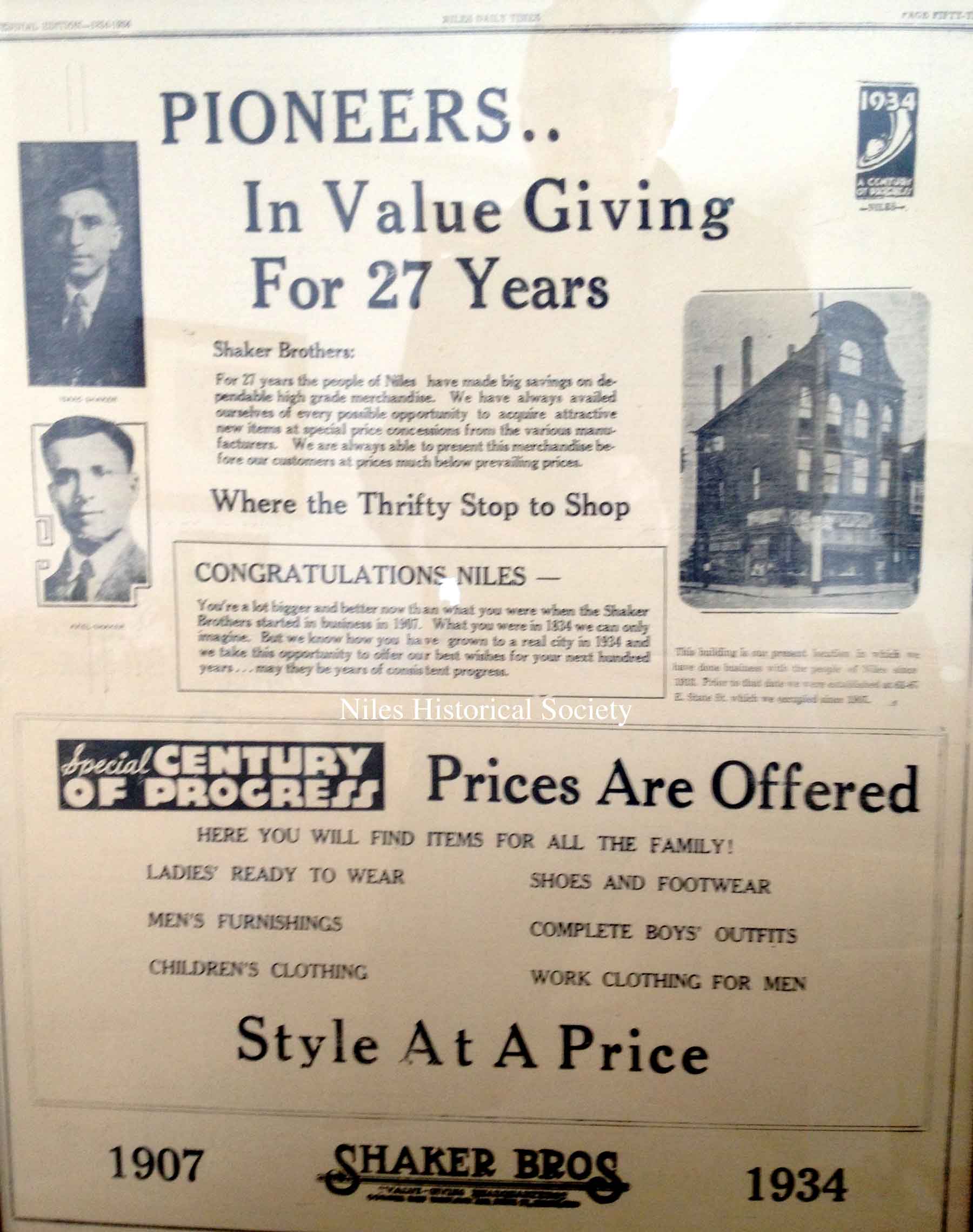 Niles Daily Times, 9-17-1930, article of the new Abrahams' Store opening.