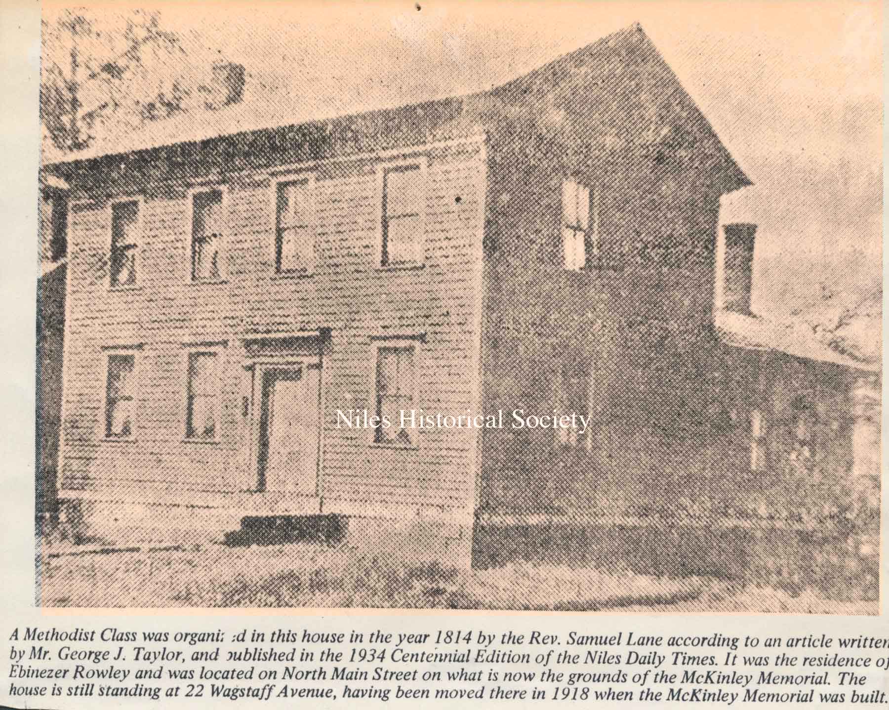 Picture of the Methodist Episcopal Church in Niles located on the corner of West Park and Arlington Street. This building replaced the frame church that burned in 1883.