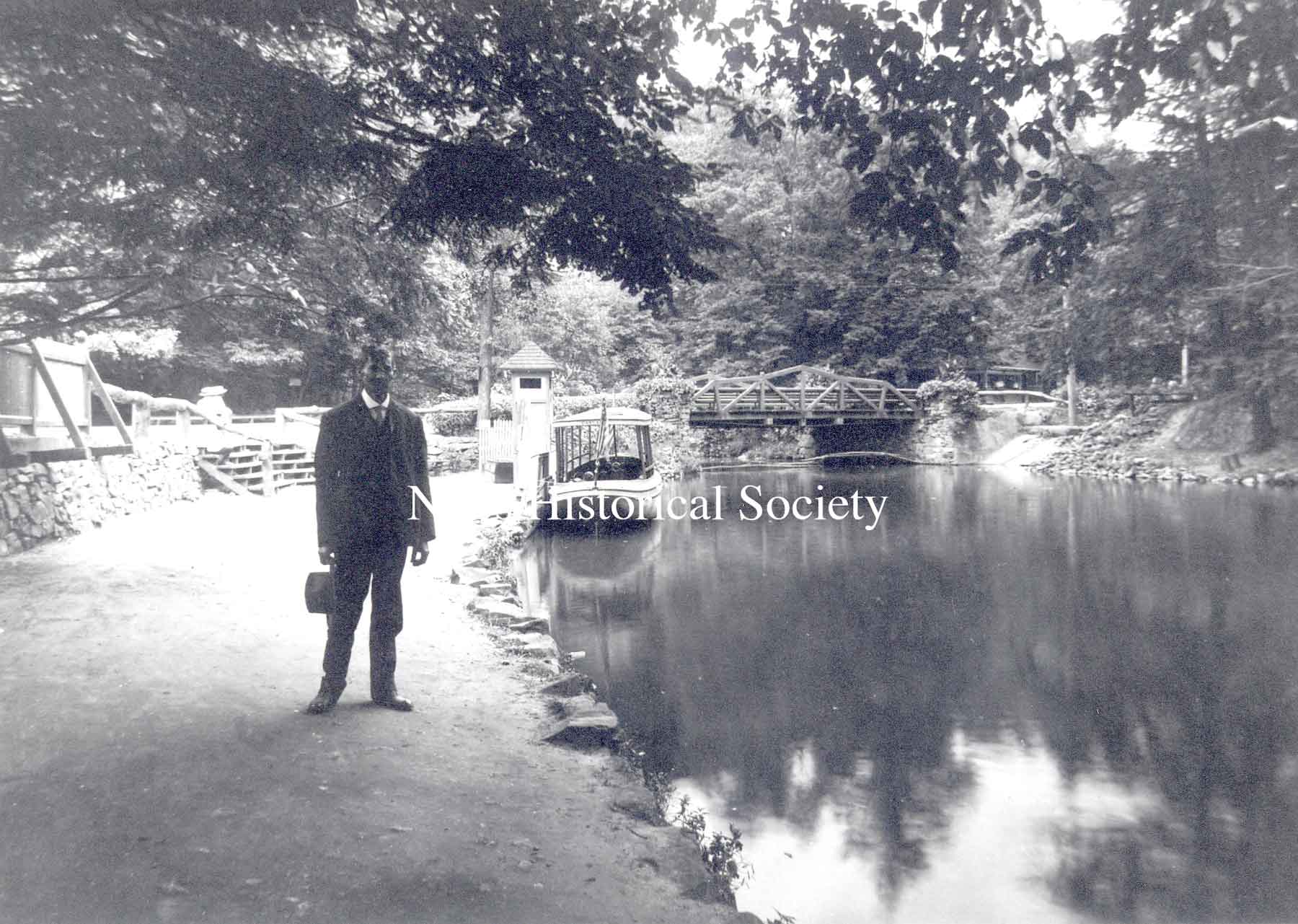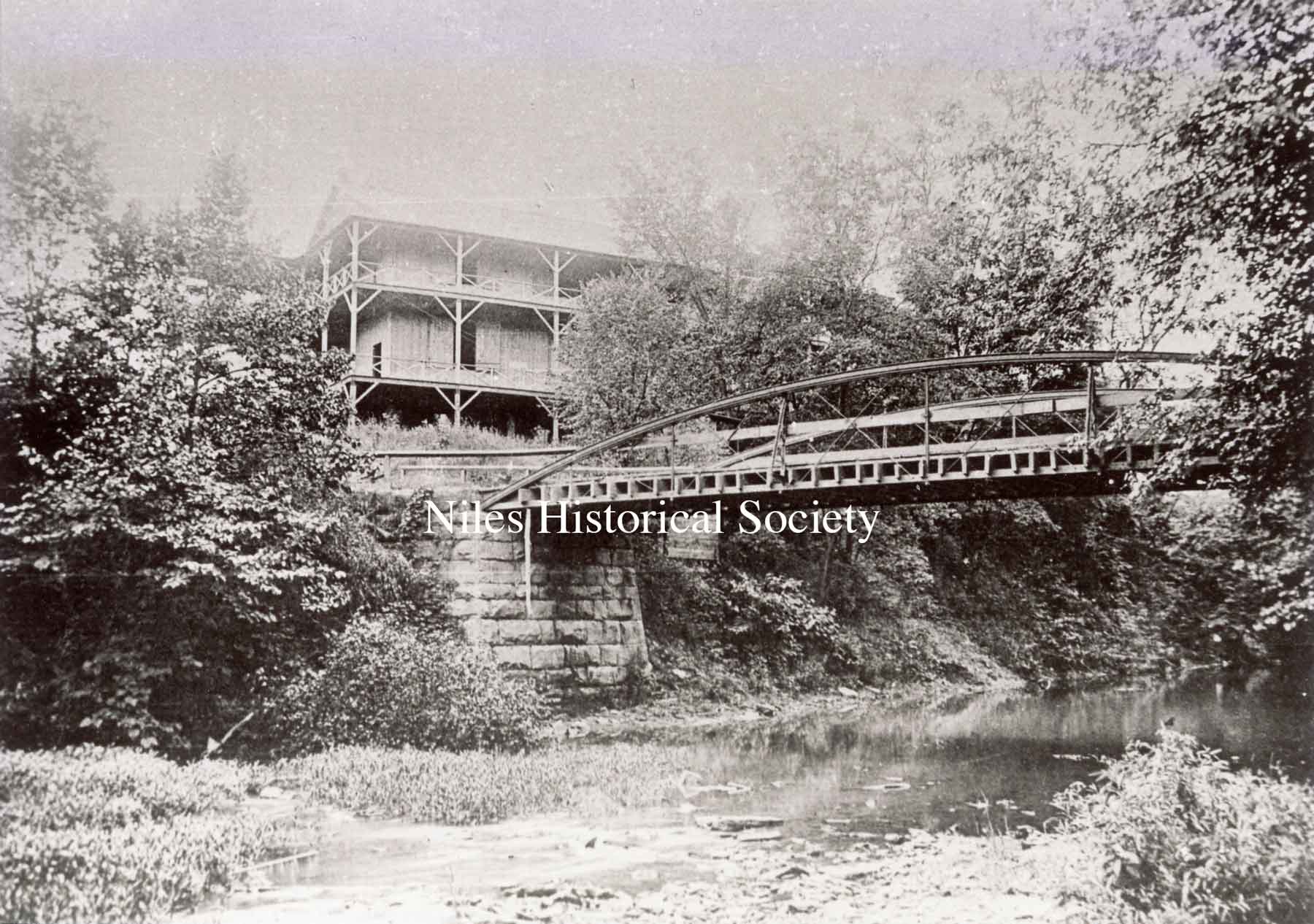 The manager of the amusement park advertised that the facilities included a large dance pavilion, which had a rambling veranda and a walking bridge across Meander Creek.