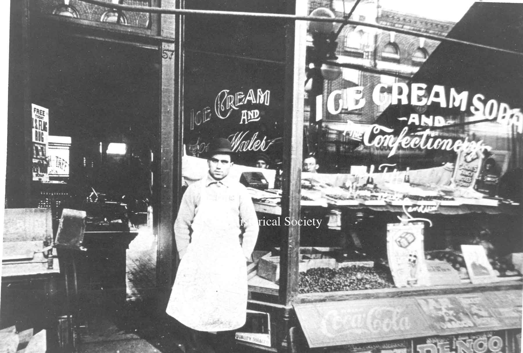 Photo taken outside Caramella’s Confectionary Shop in 1906 after it had been recently remodeled.